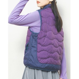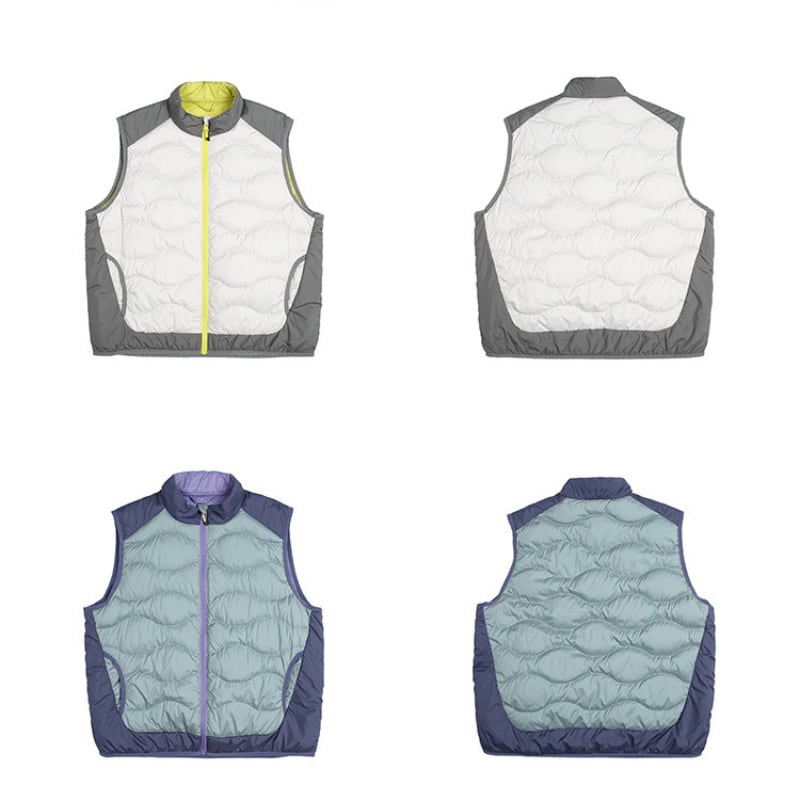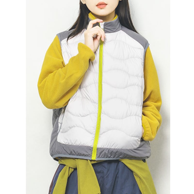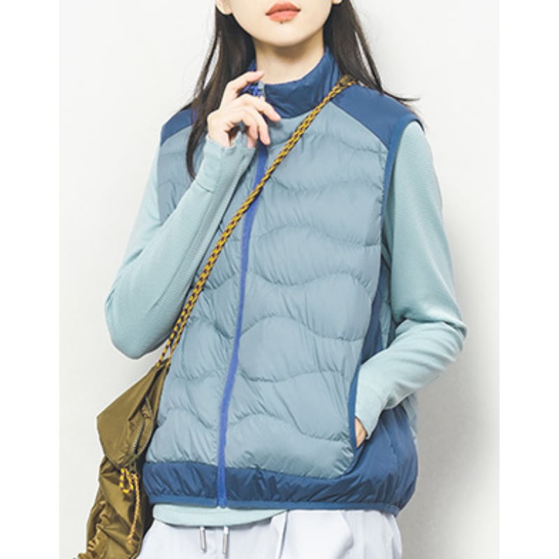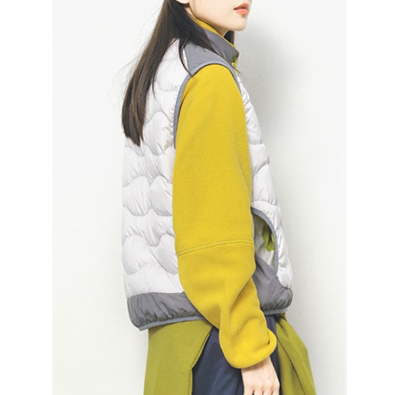 特徴的な波型のキルティングパターンがデザイン性を高めた、中綿入りのベストです。