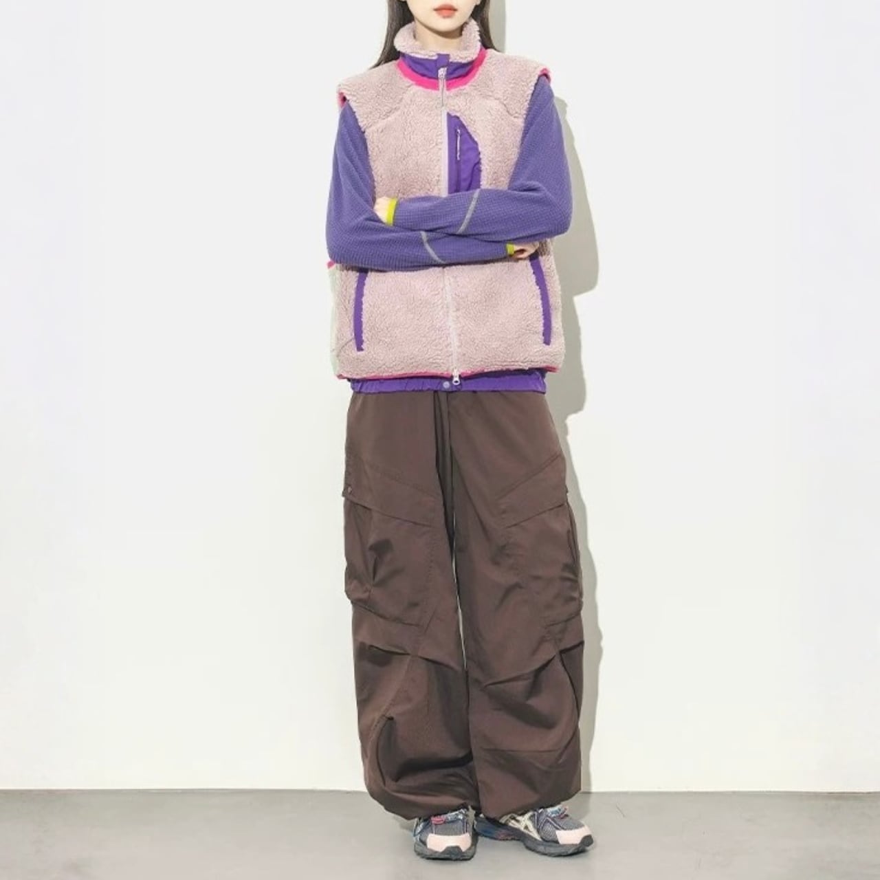 配色切り替えが目を引くフリースベスト。