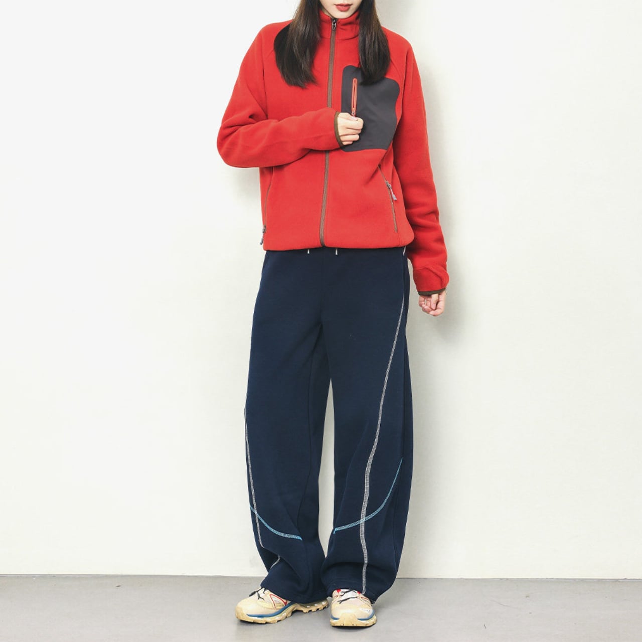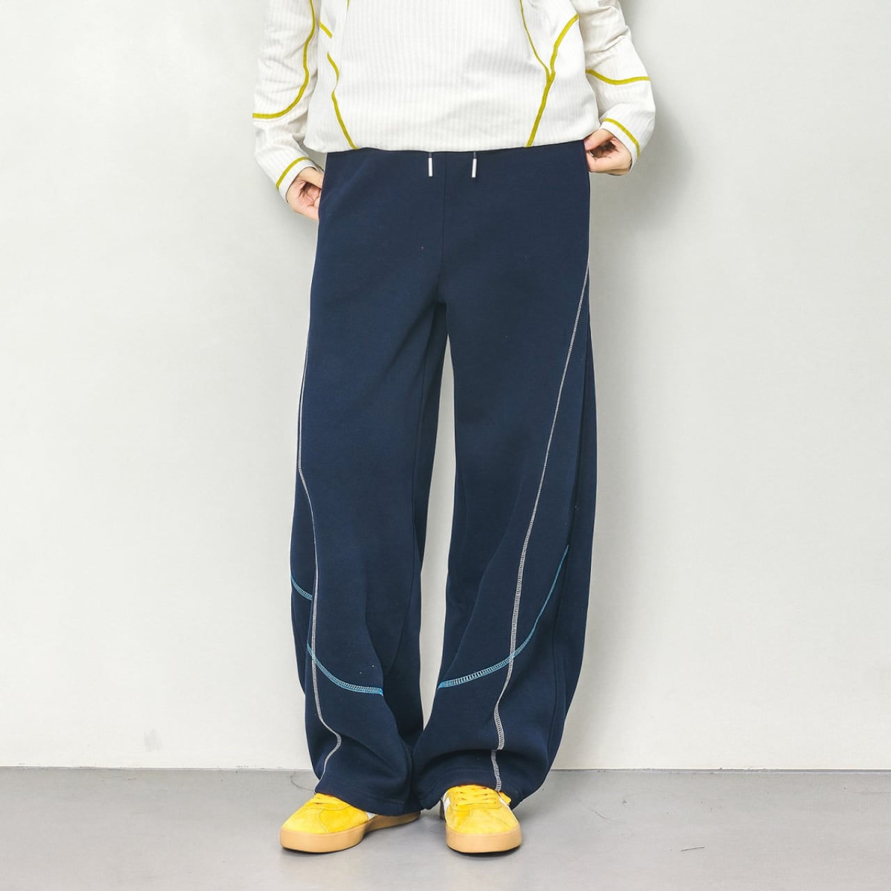 配色ステッチカーブラインスウェットパンツ C00917