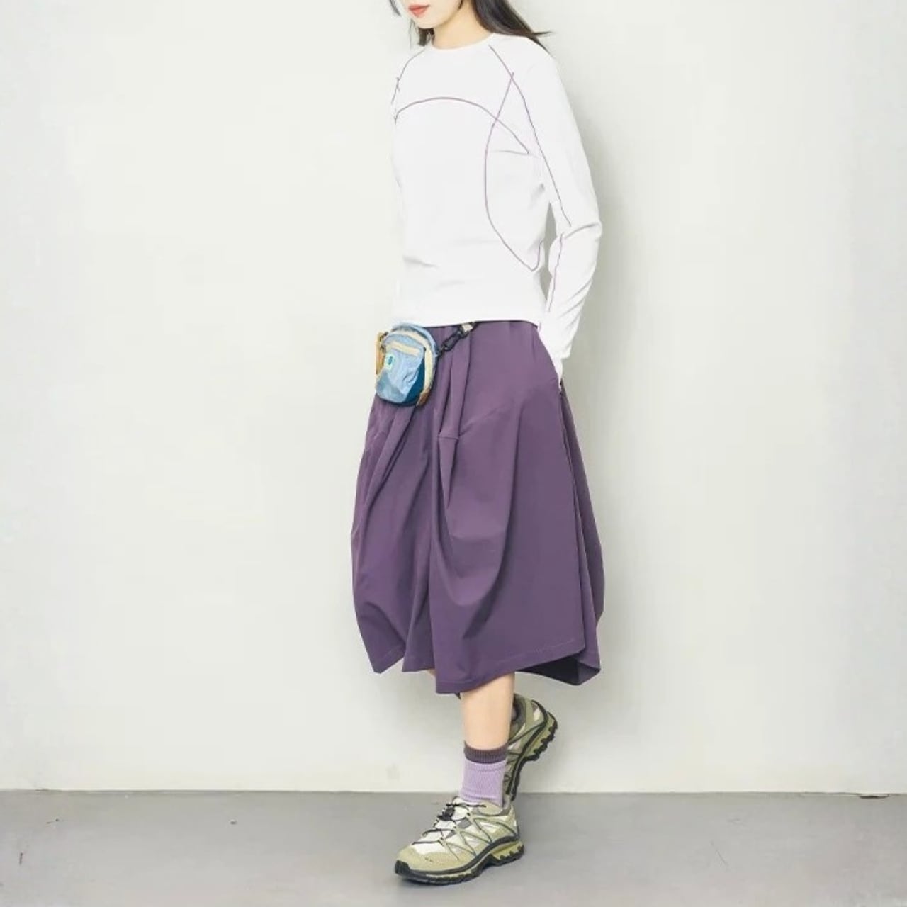 ボディラインに沿う切り替えラインが印象的なロングスリーブトップ。