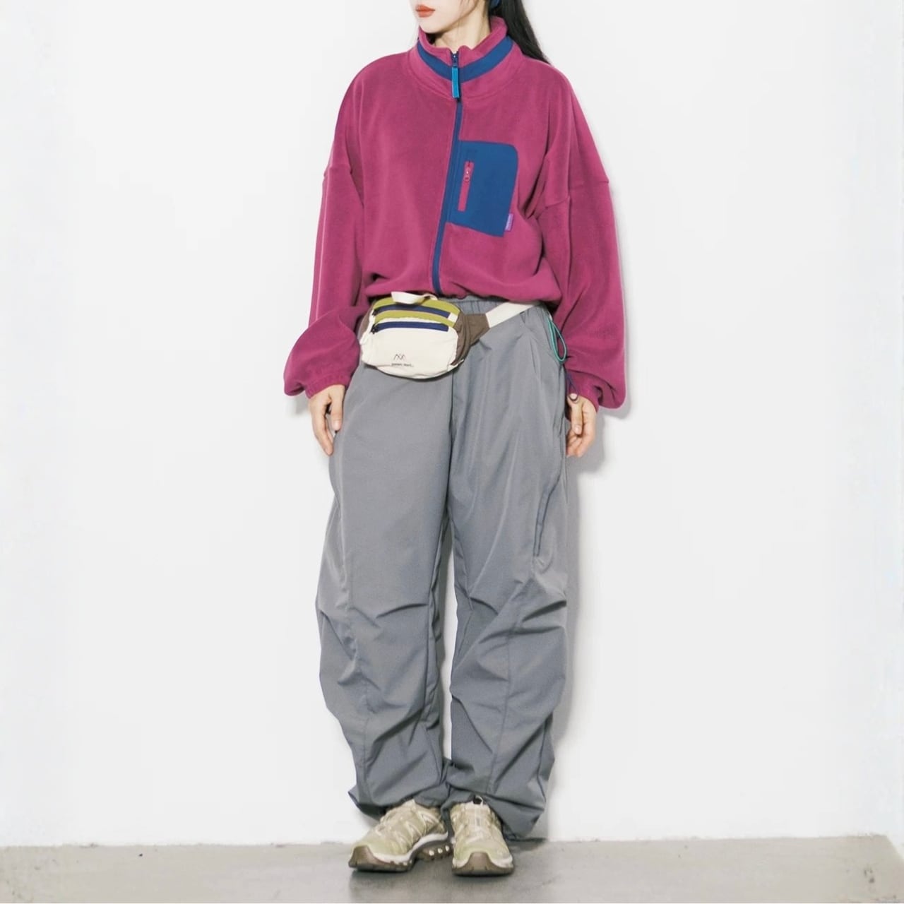ジップポケットとドローコード仕様を備え、実用性のあるデザイン。