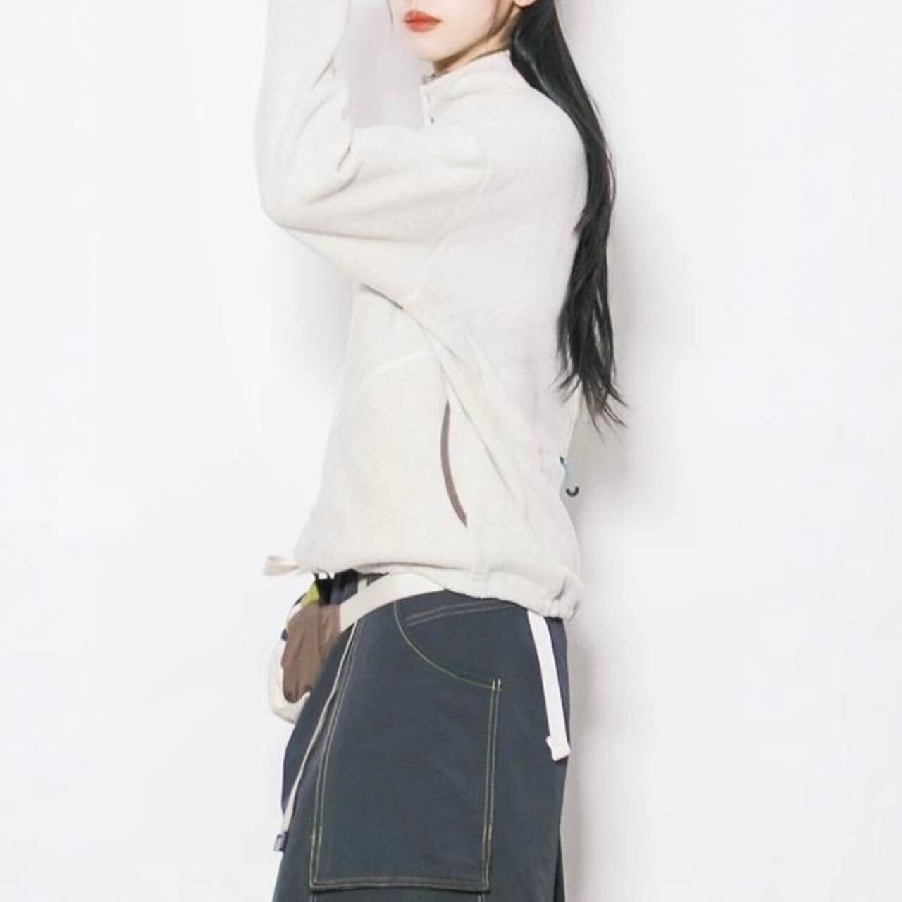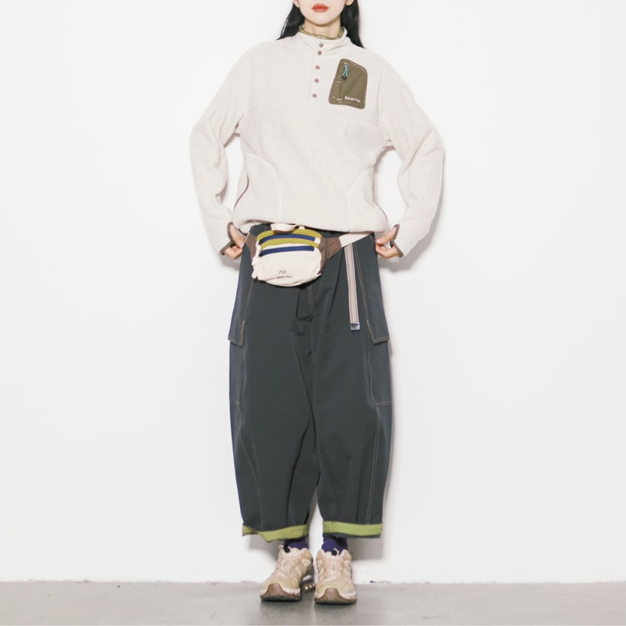 首元のハーフスナップと胸元の異素材ポケットが印象的なプルオーバー。