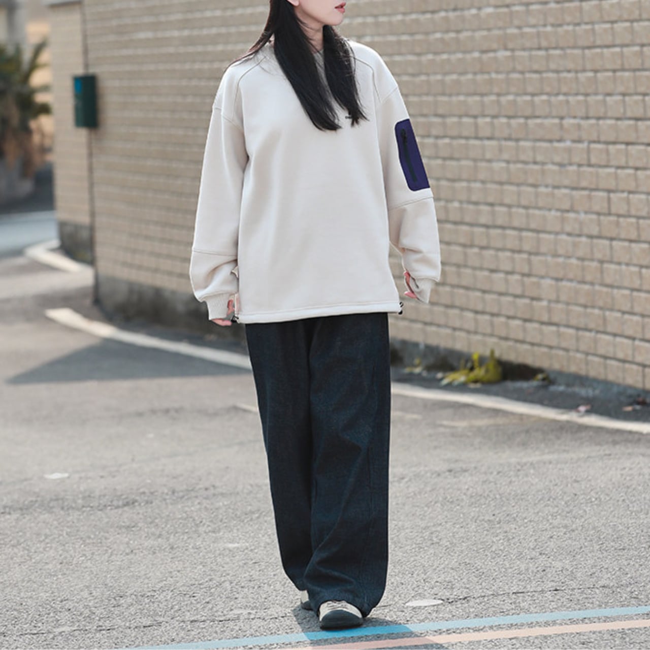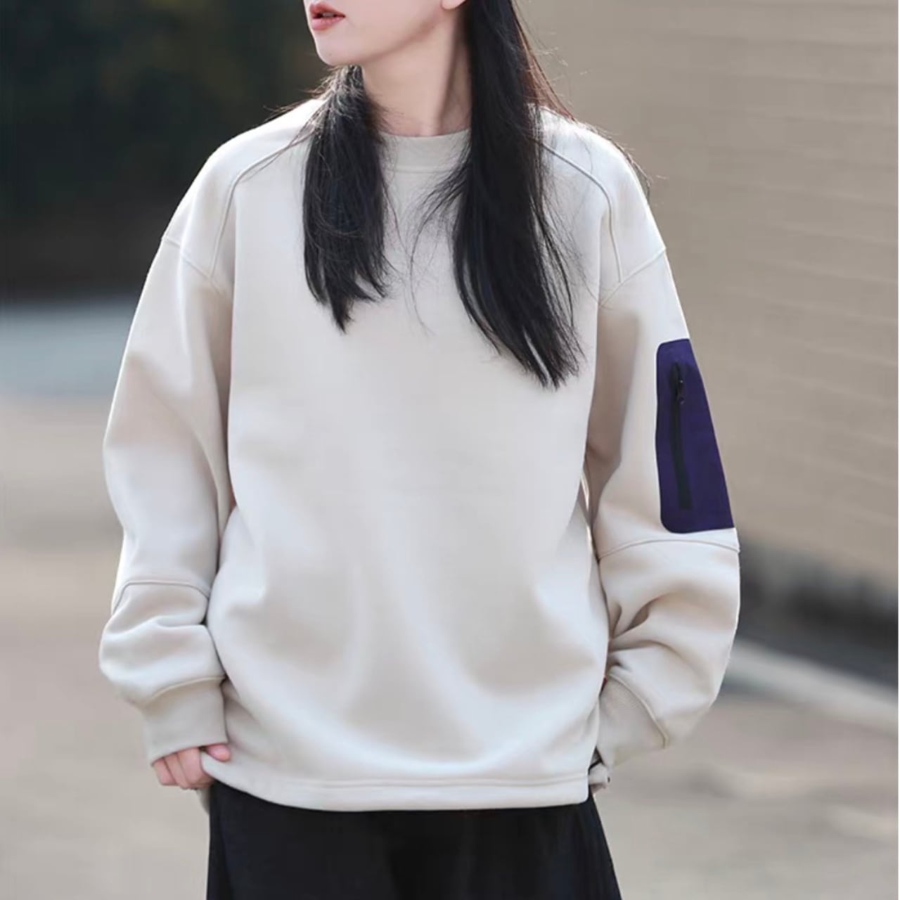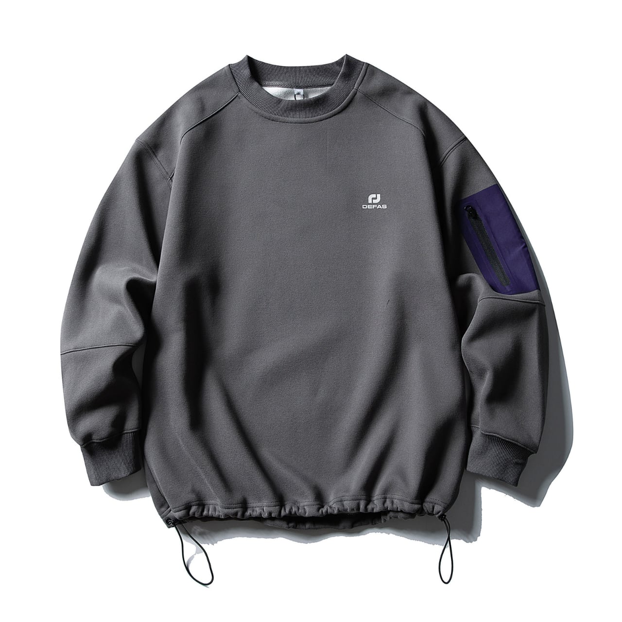 袖に配色切替のファスナーポケットを配したプルオーバー。