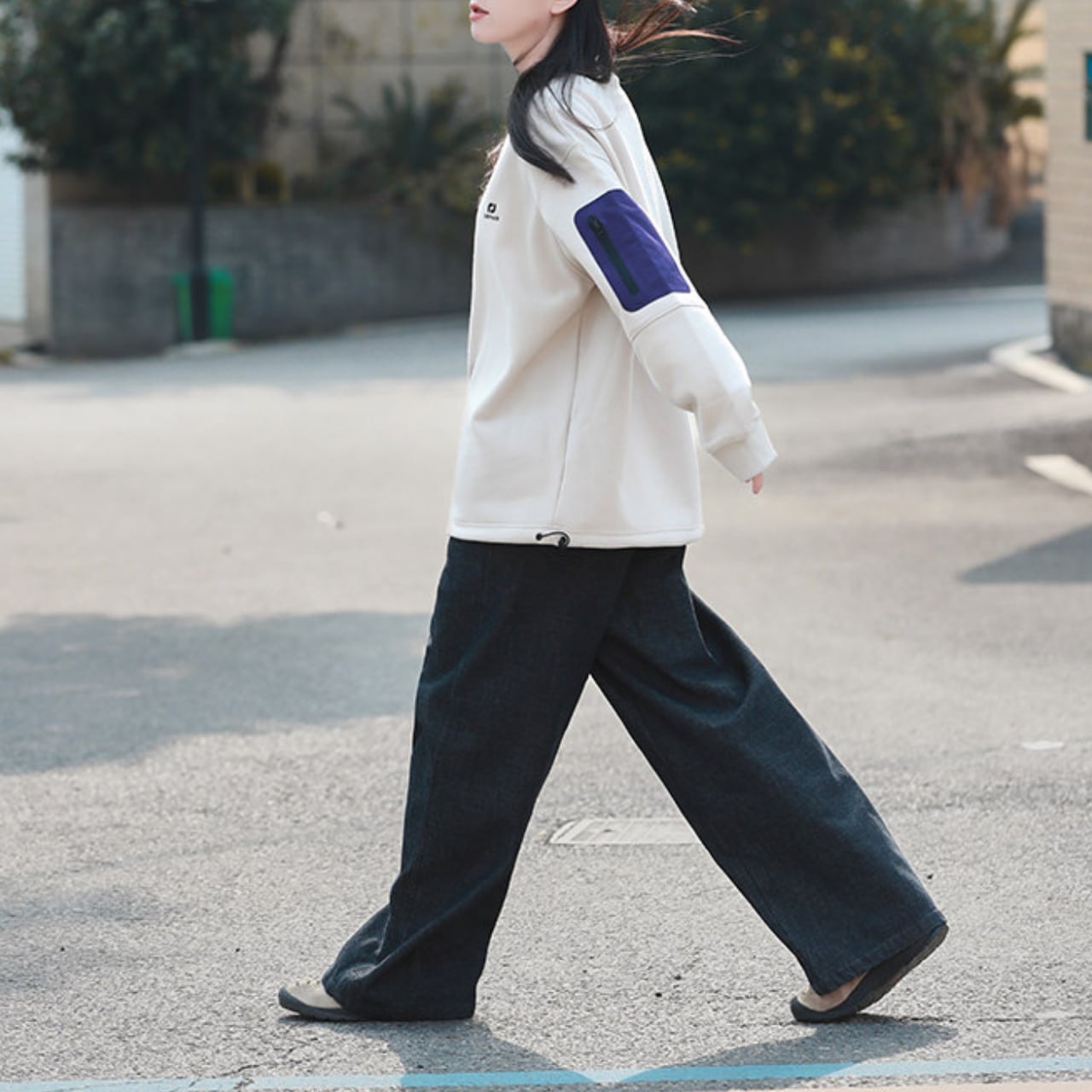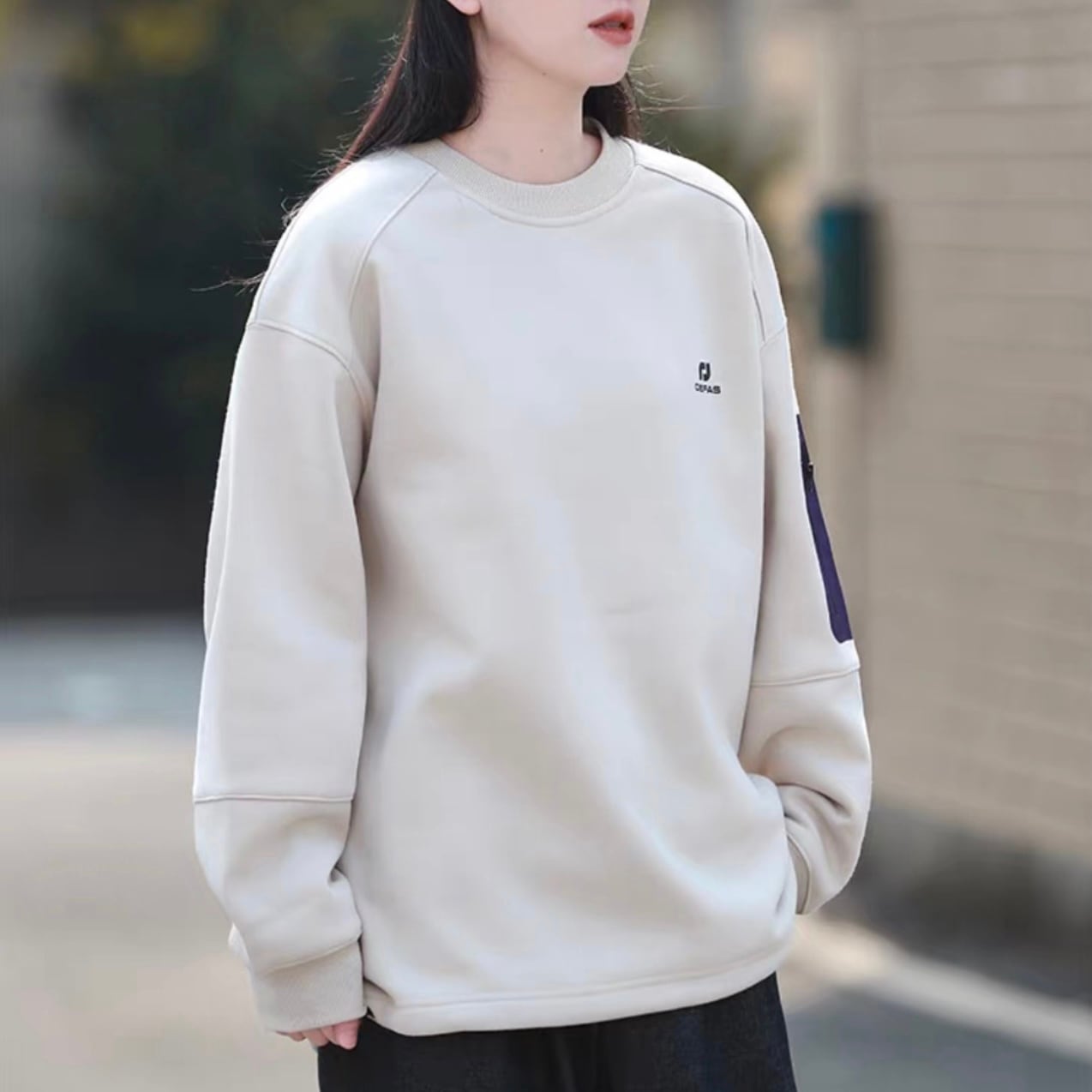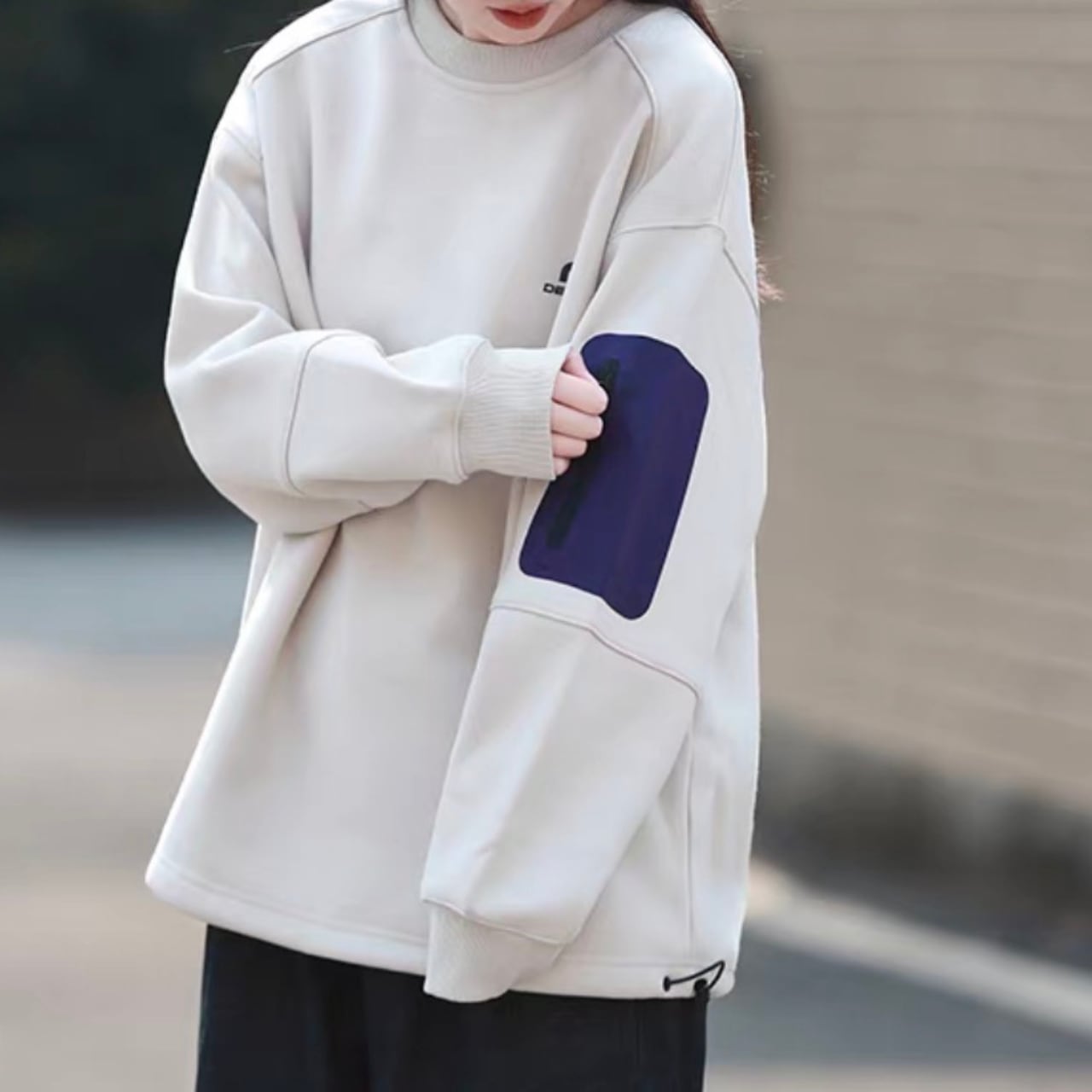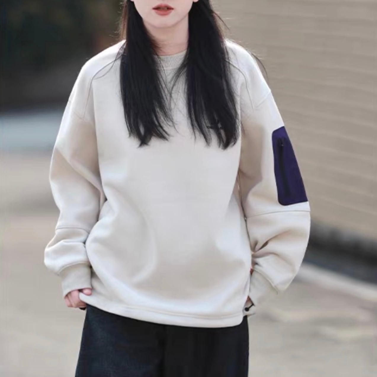 袖に配色切替のファスナーポケットを配したプルオーバー。