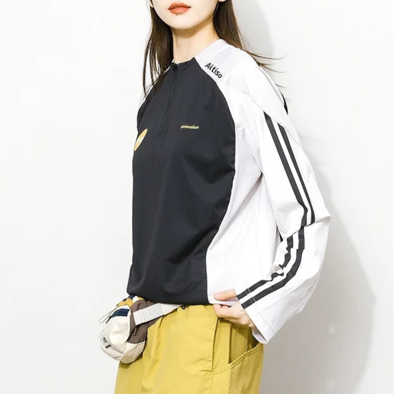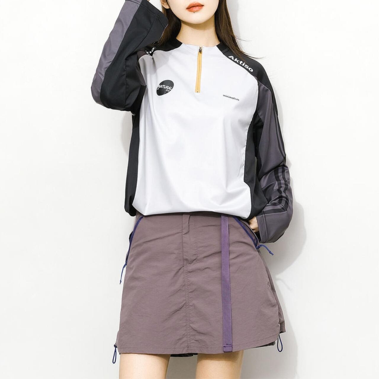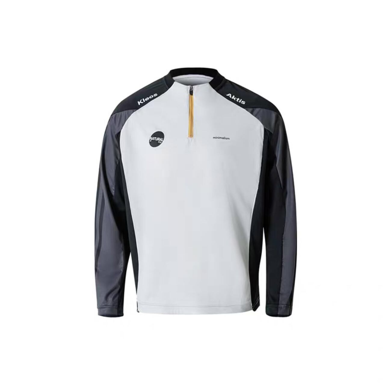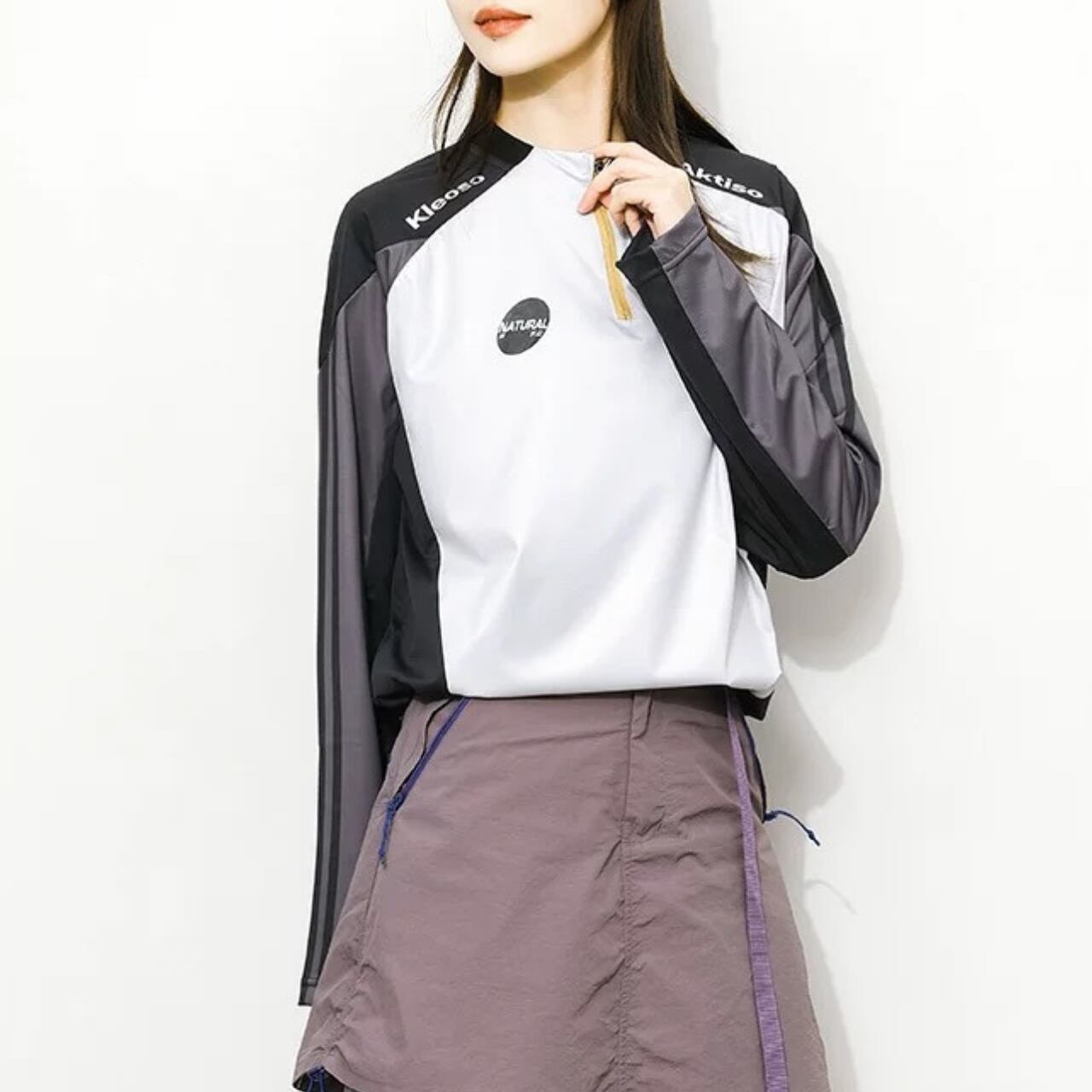 ラグラン仕様とハーフジップを取り入れたデザイン。