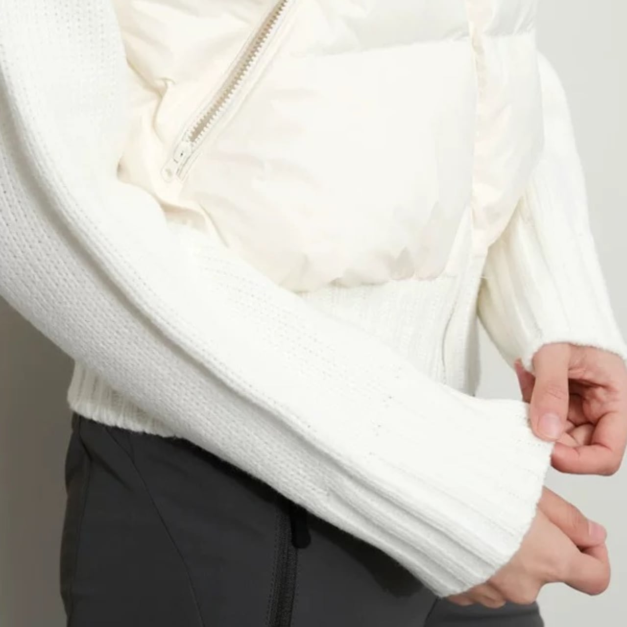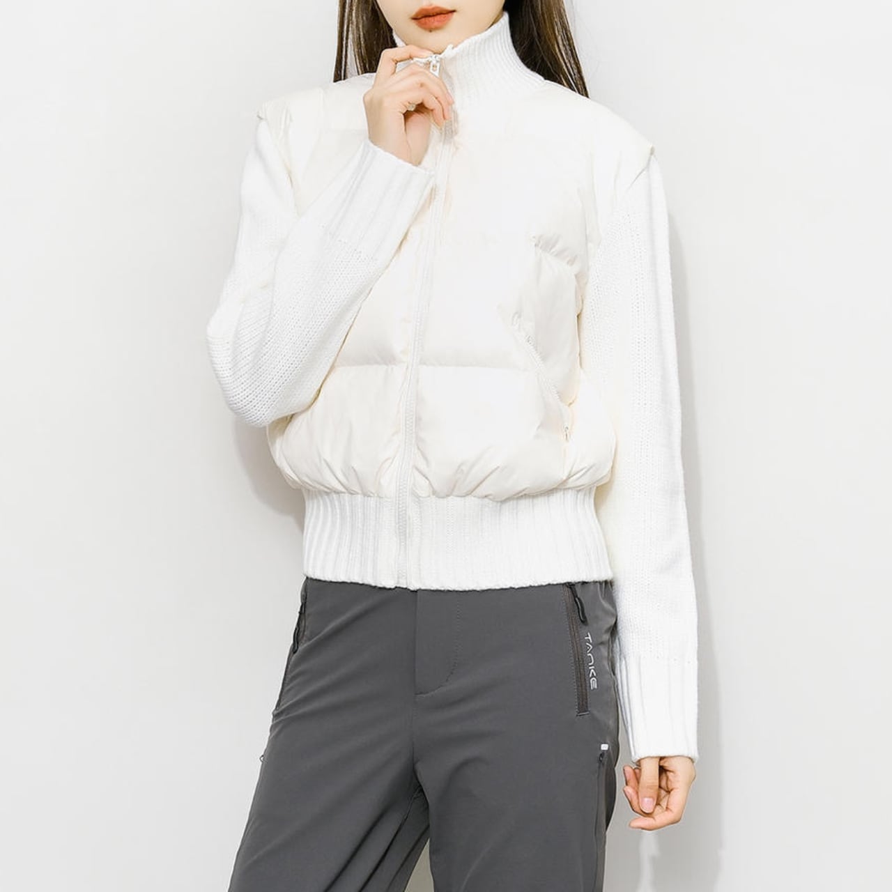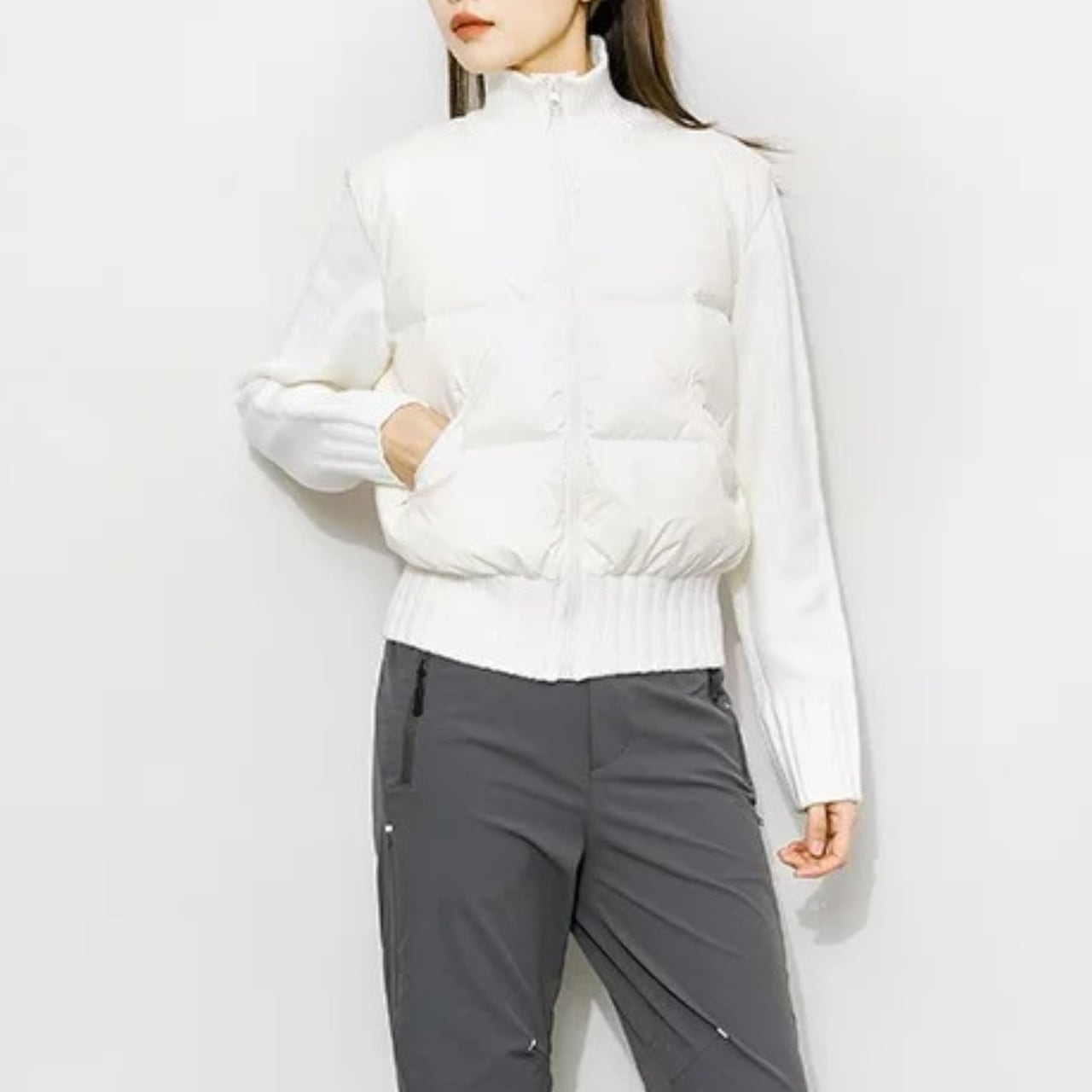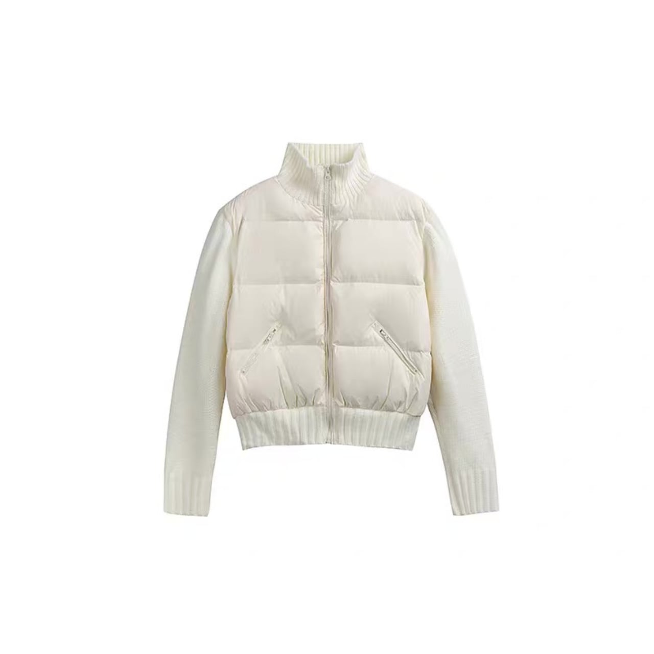 ニット切替と中綿デザインを組み合わせたジャケット。