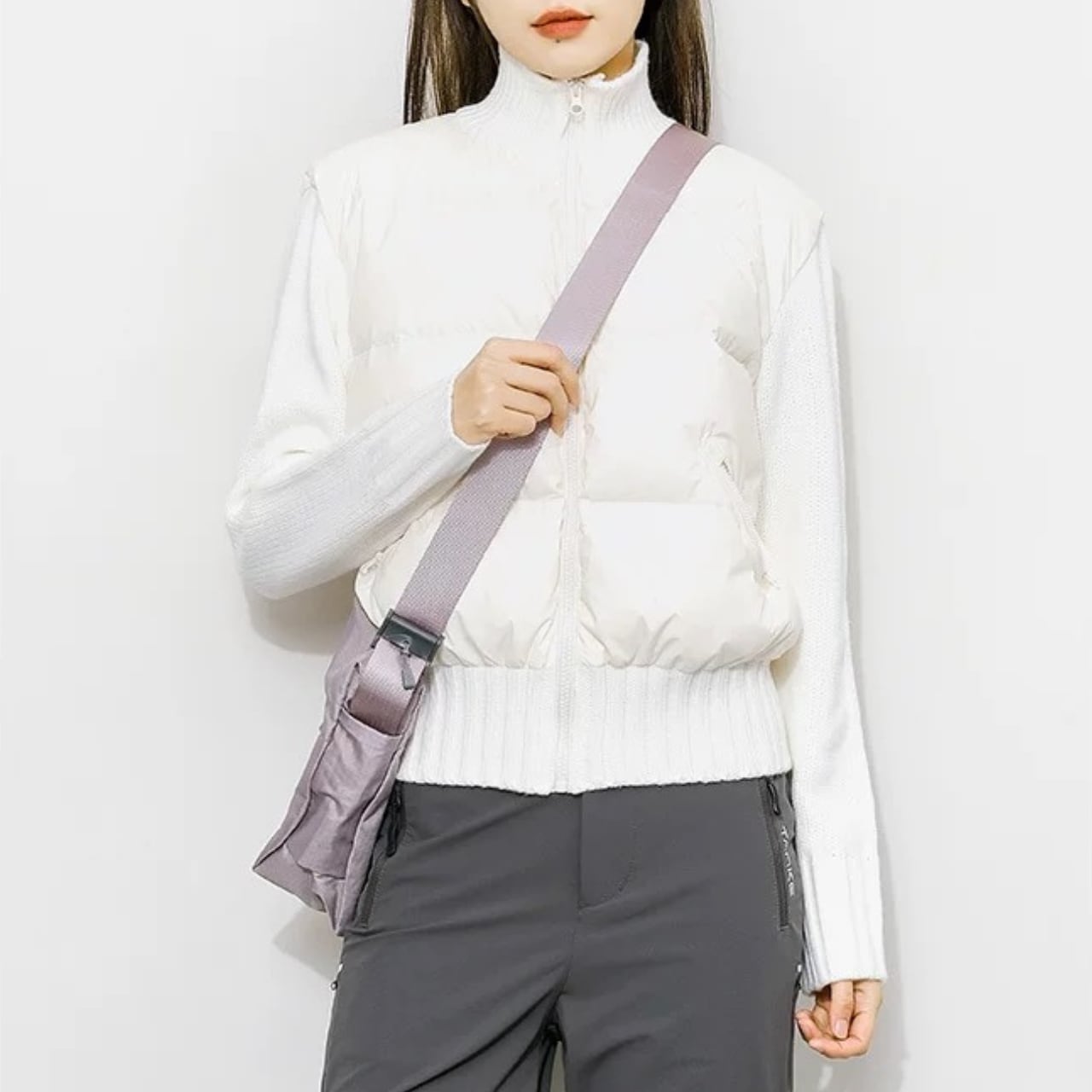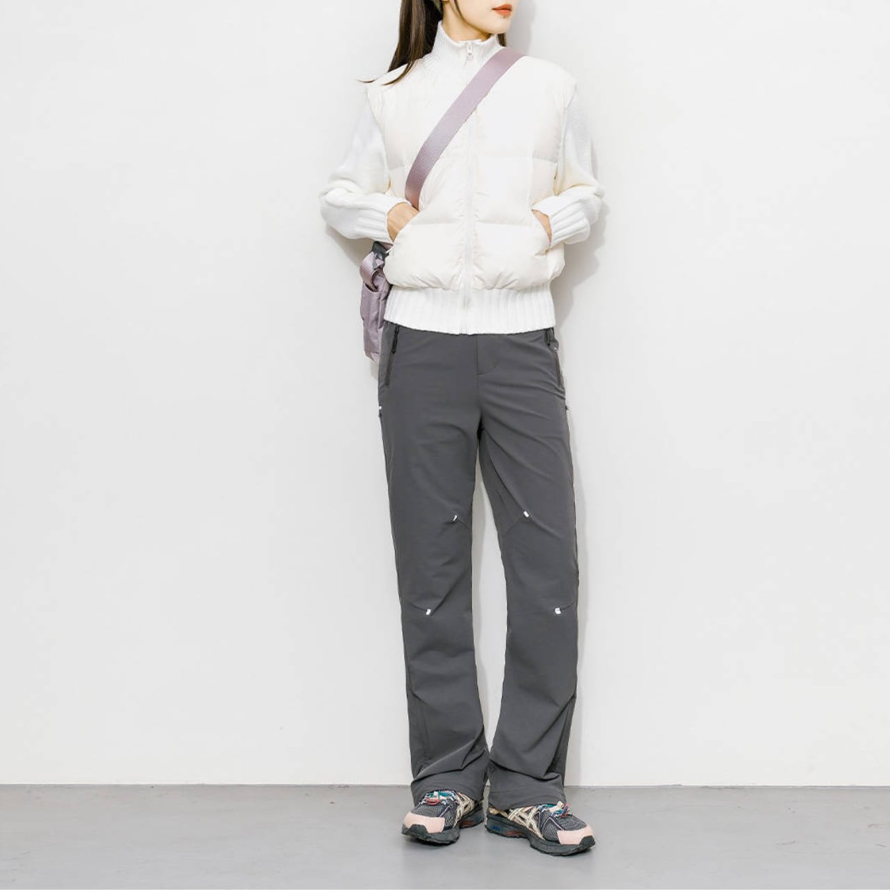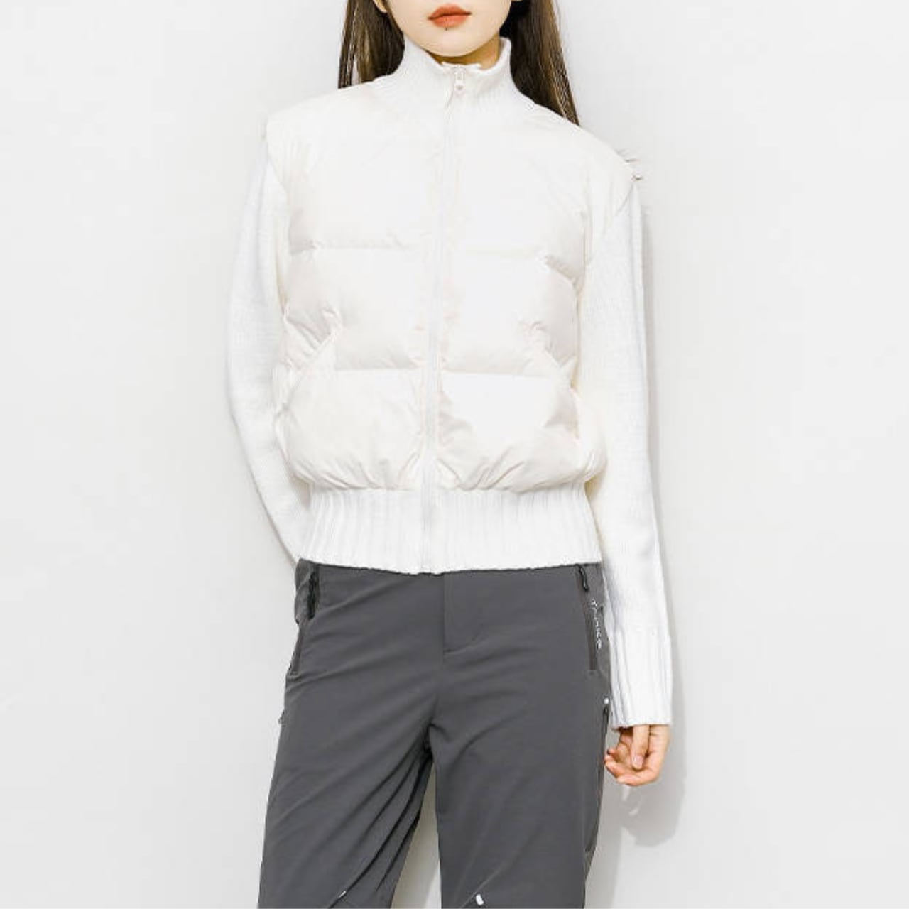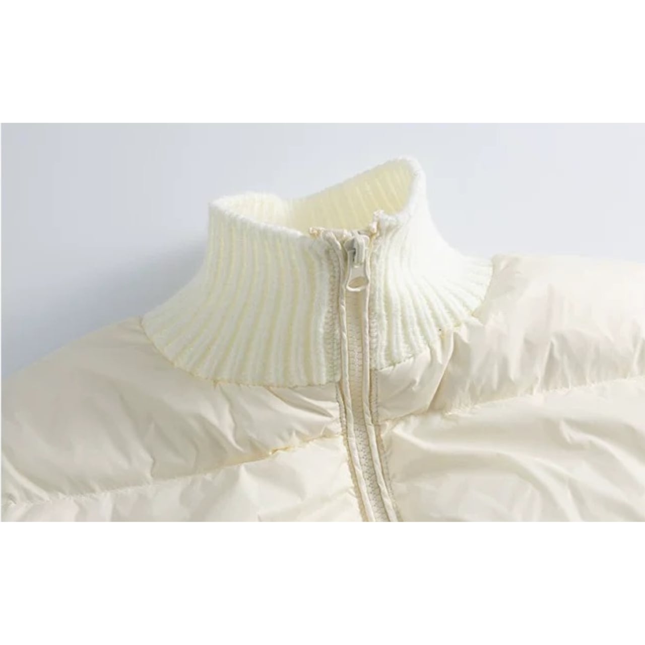 ニット切替と中綿デザインを組み合わせたジャケット。