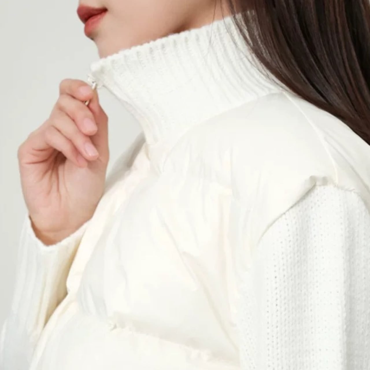 スタンドカラーとジップ仕様が、すっきりとした印象をつくります。
