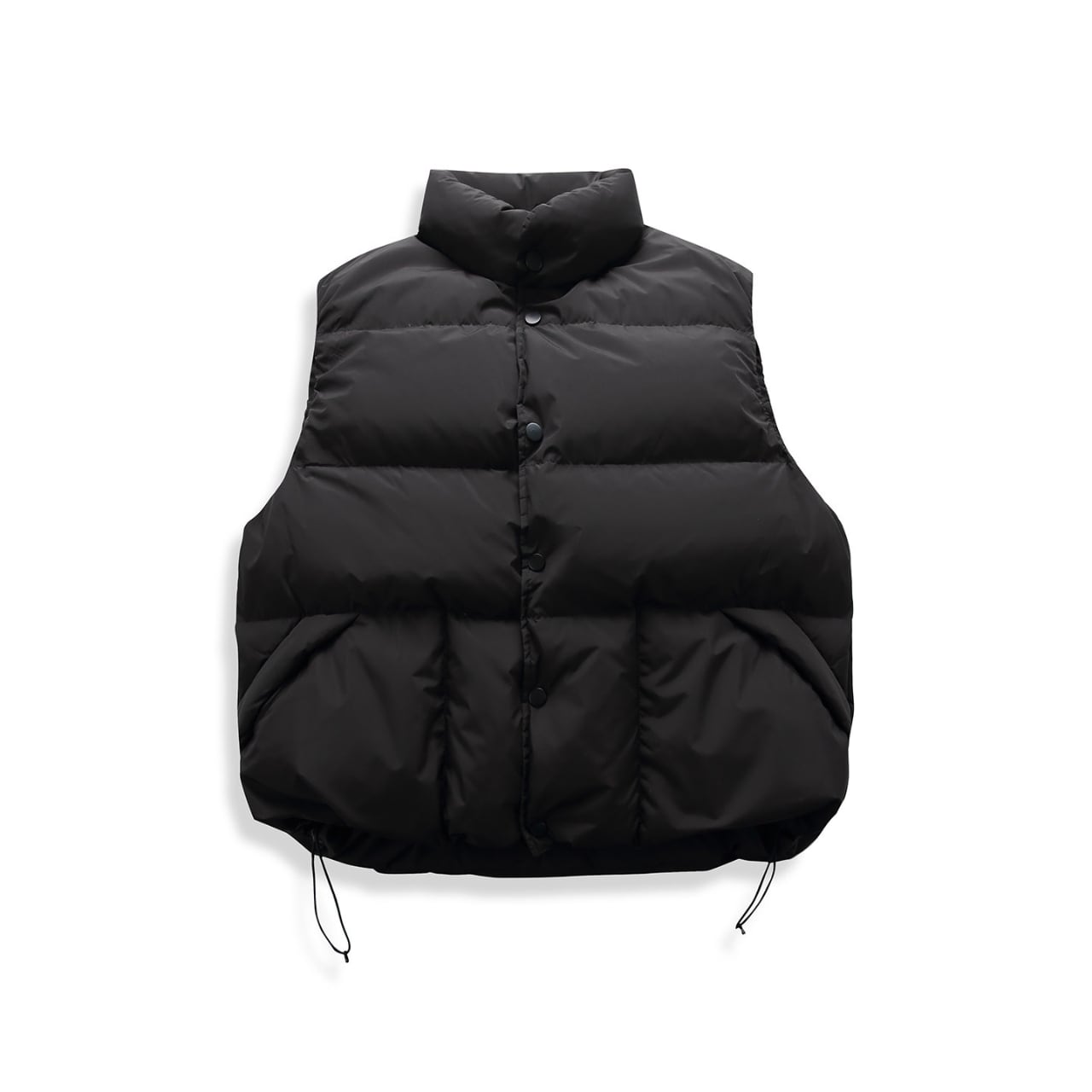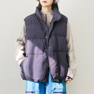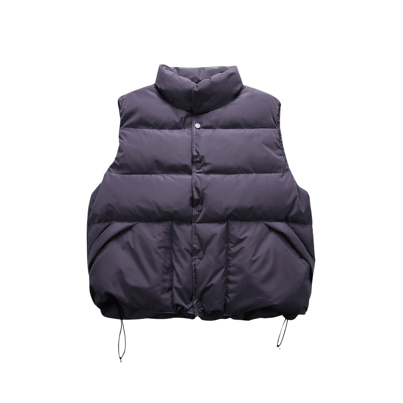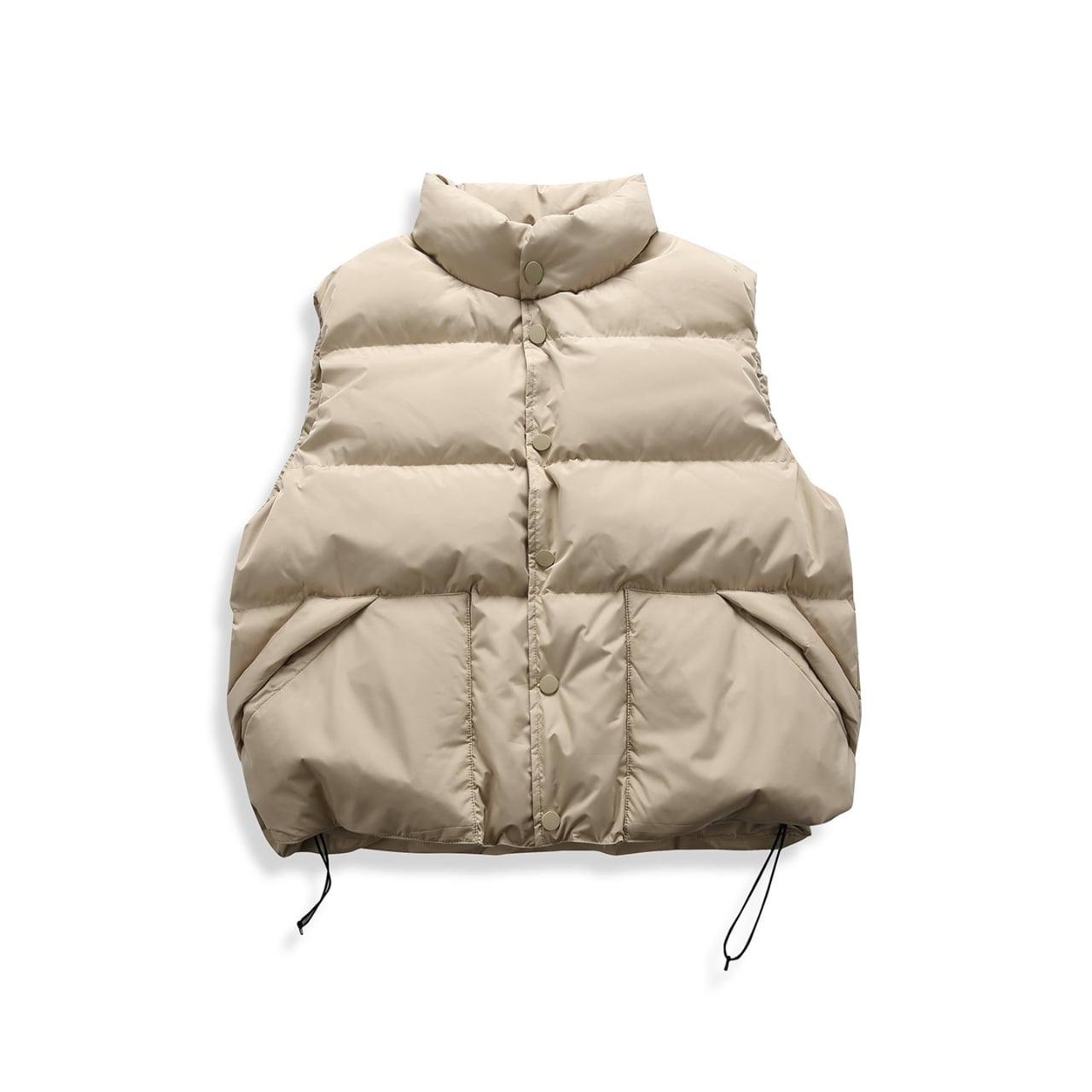 ふっくらとしたボリューム感とスタンドカラーが印象的な中綿ベスト。