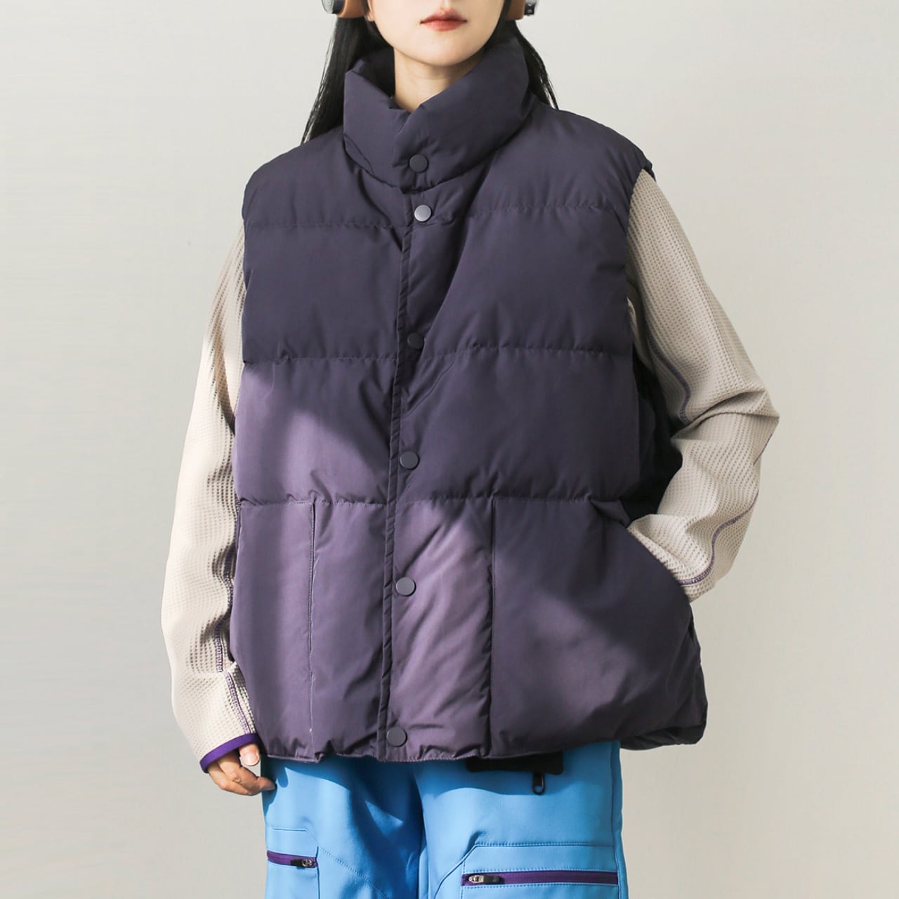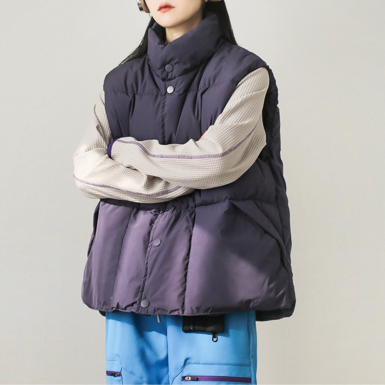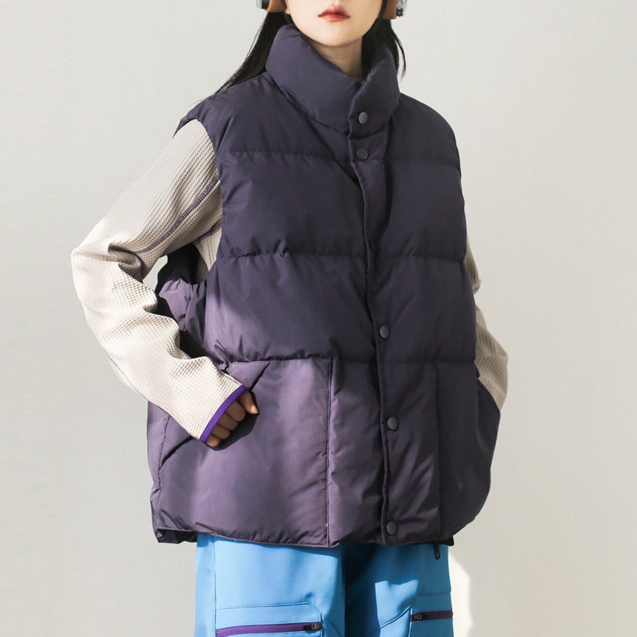 ふっくらとしたボリューム感とスタンドカラーが印象的な中綿ベスト。
