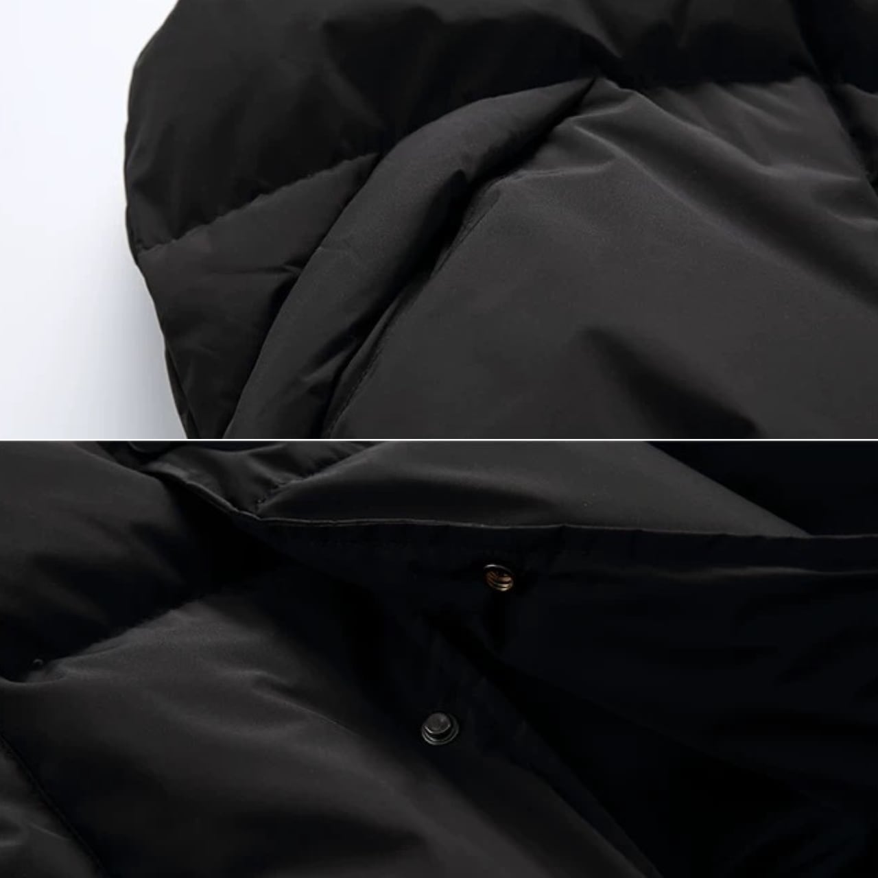 スナップボタン仕様と立体的なポケットで、レイヤードしやすいバランスに。