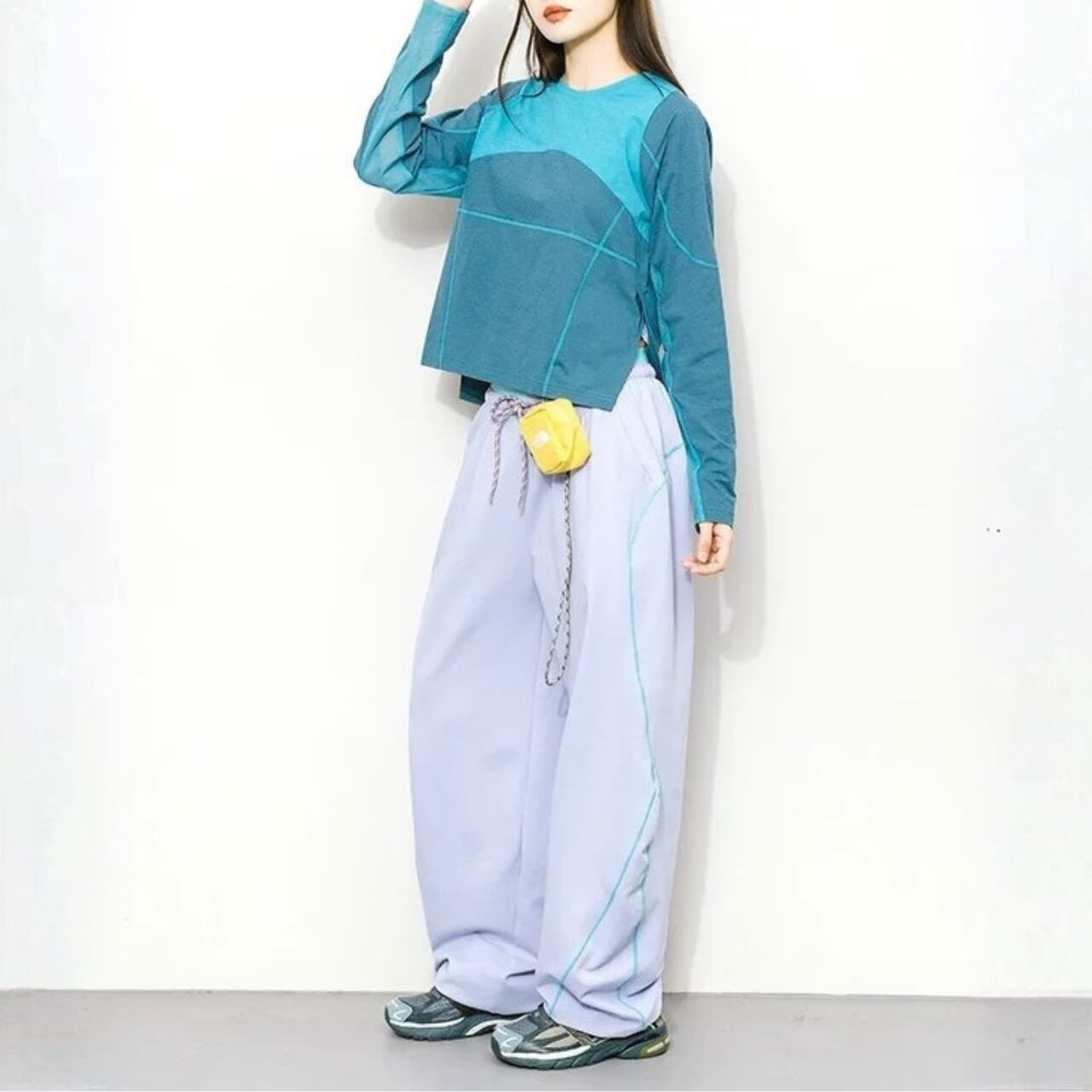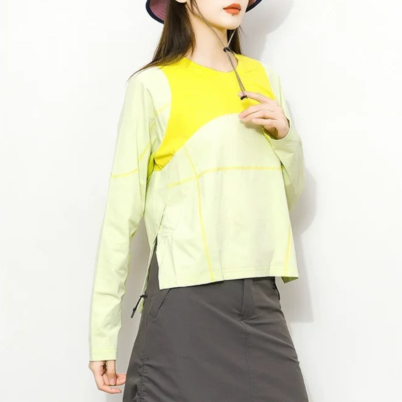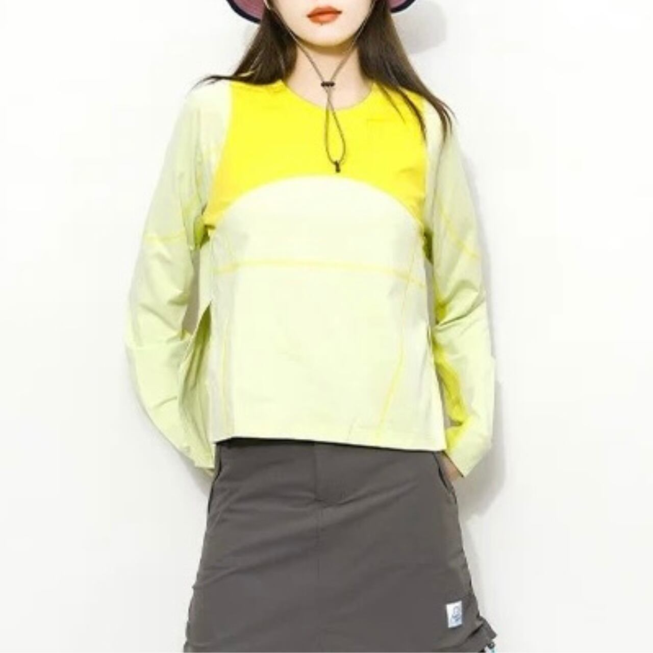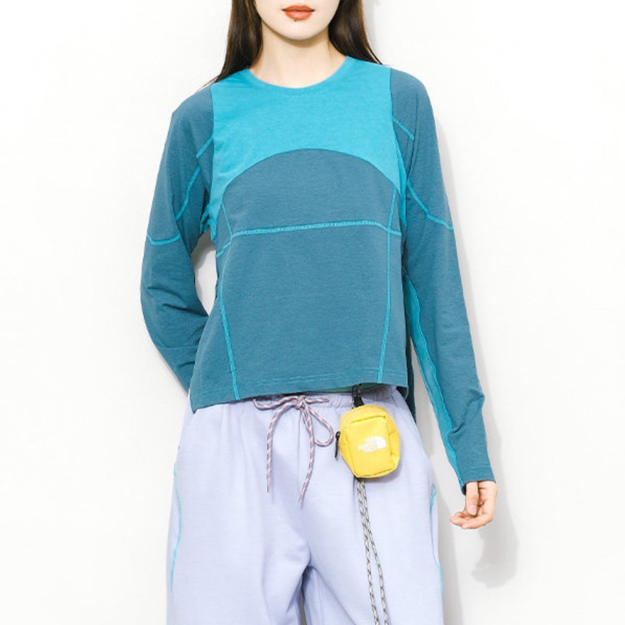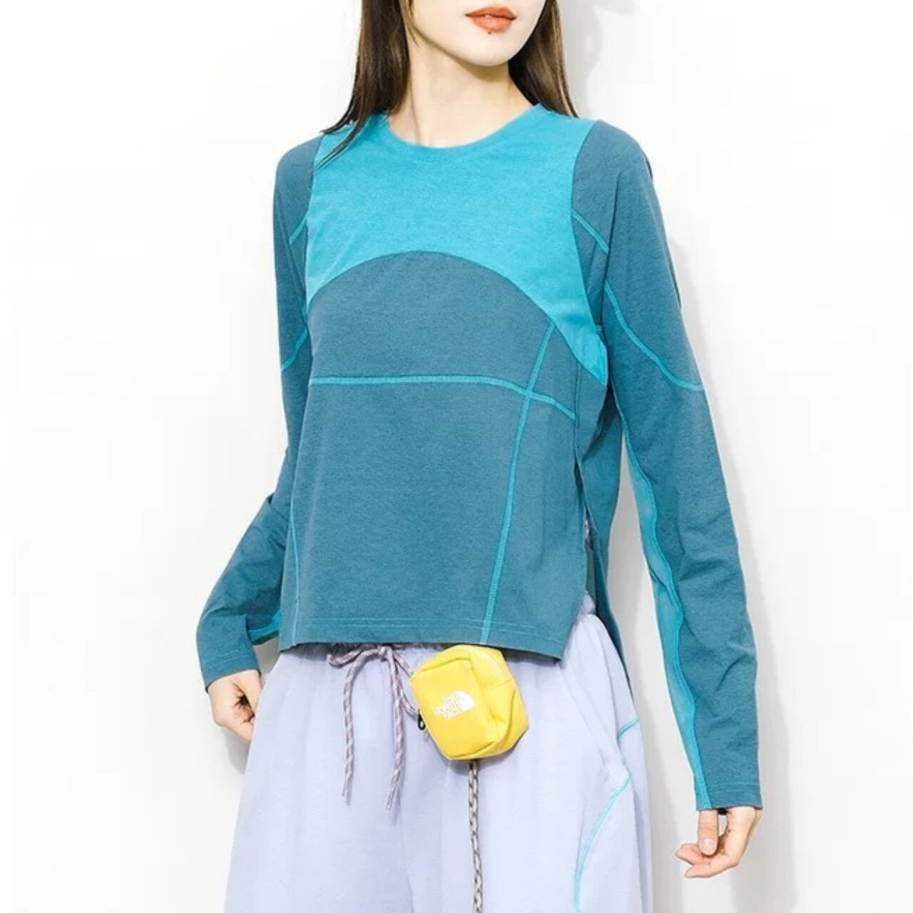 コントラストのある配色が目を引くロングスリーブトップ。