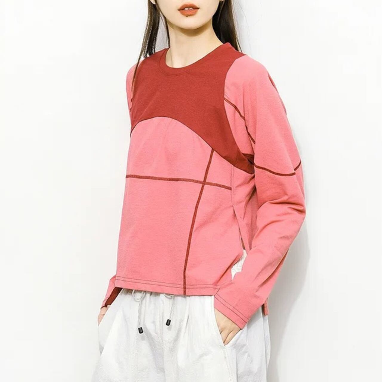 バイカラーロングスリーブトップ C00974