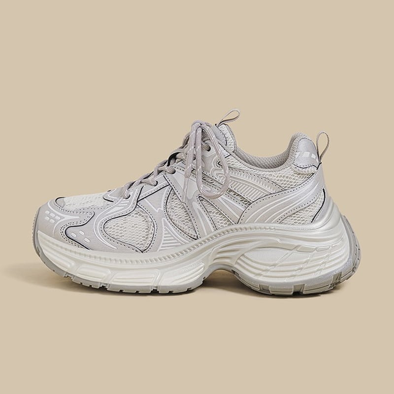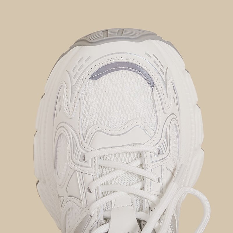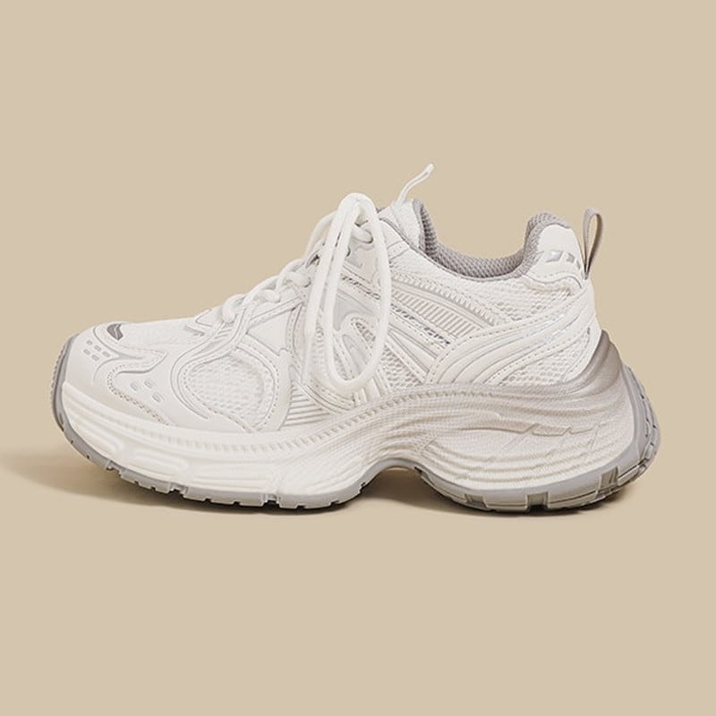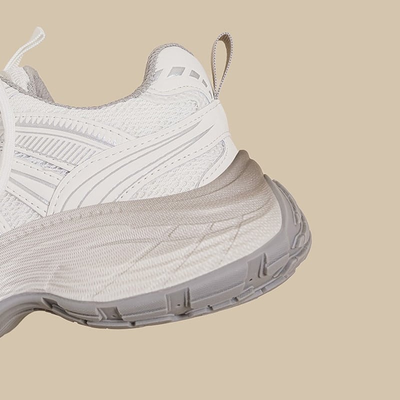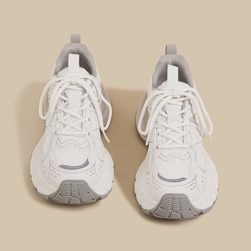 クリーンな質感と圧倒的なソールのボリューム感が目を引く、トレンドライクなダッドスニーカーです。