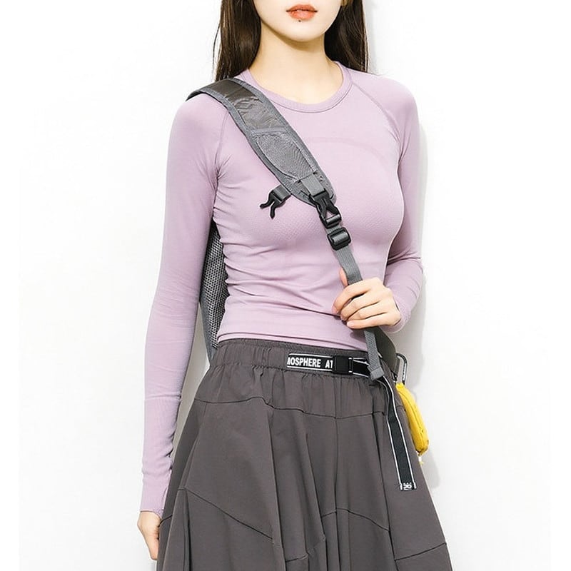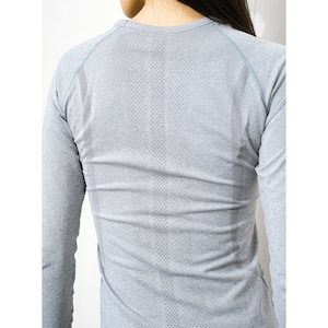 身体の動きを妨げない優れた伸縮性と、縫い目の少ないシームレスな設計が快適な着心地を叶えるトップスです。