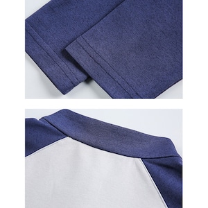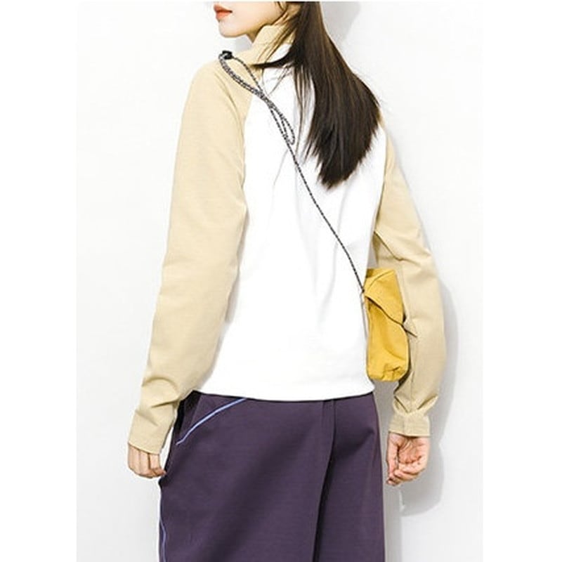 袖と身頃で切り替えたバイカラーデザインが、都会的で洗練された印象を与える長袖トップスです。