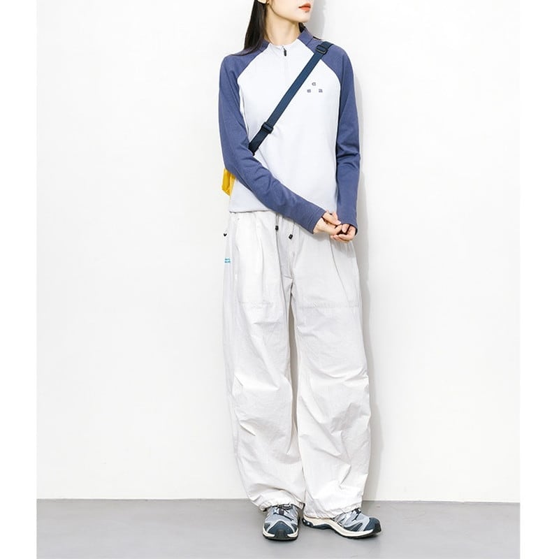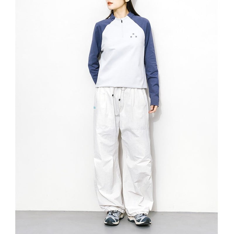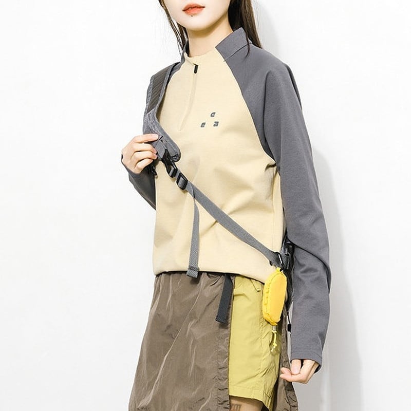 首元のハーフジップにより、シーンに合わせてスタンドカラーの高さやシルエットを自由に調節できます。
