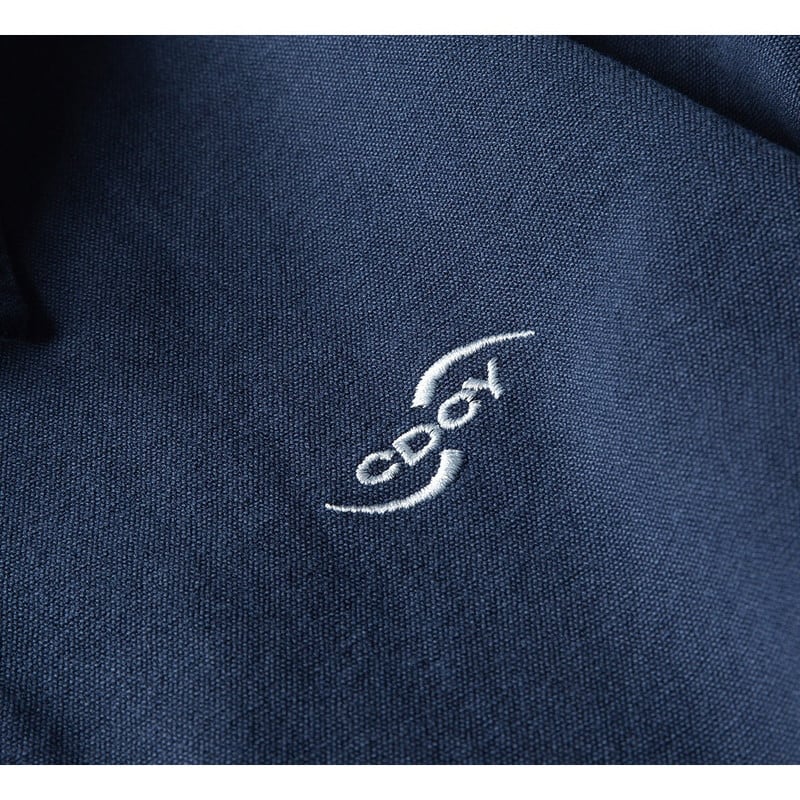 胸元のミニマルなロゴ刺繍がさりげない個性を放ち、デニムやワイドパンツと合わせた旬なメンズライクコーデに最適な一着です。