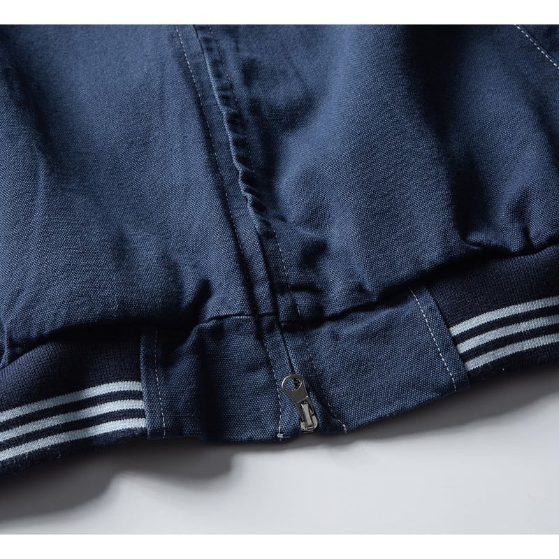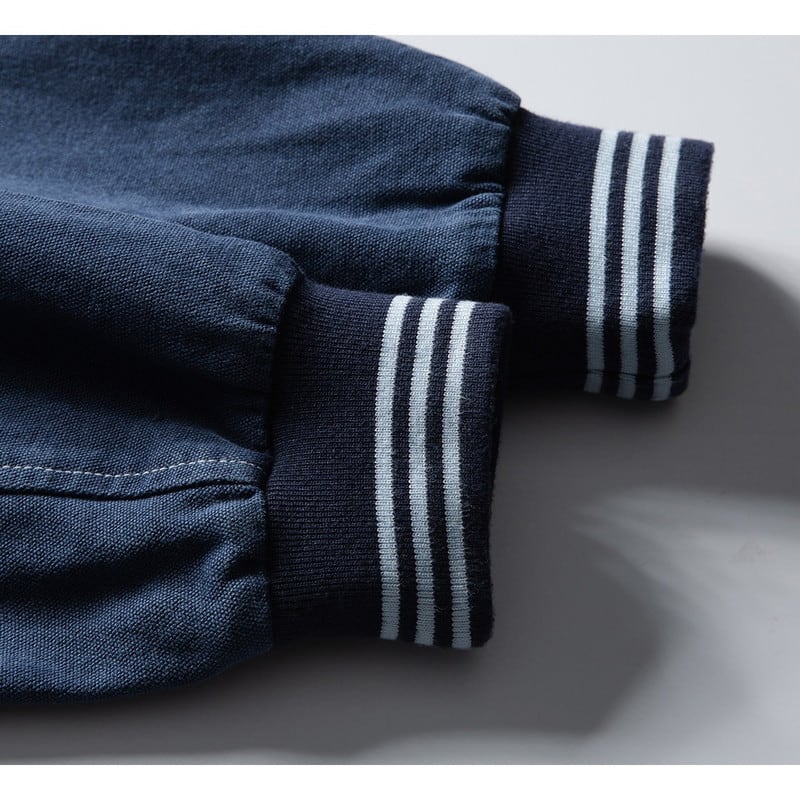 襟付きのシャープなデザインに、袖口のリブボーダーがスポーティーでクラシカルなアクセントを添えます。