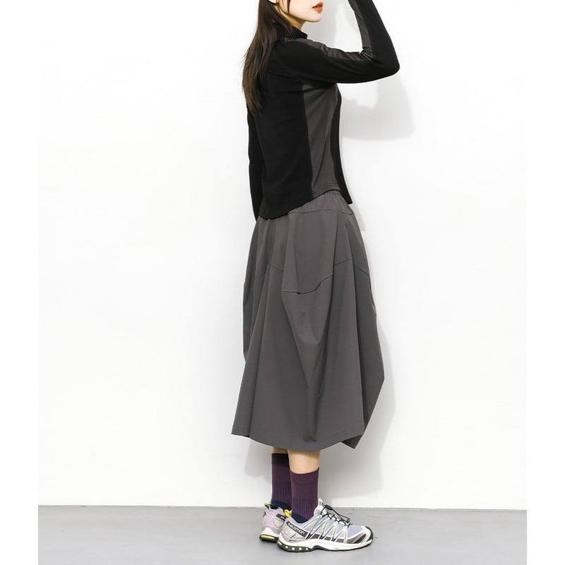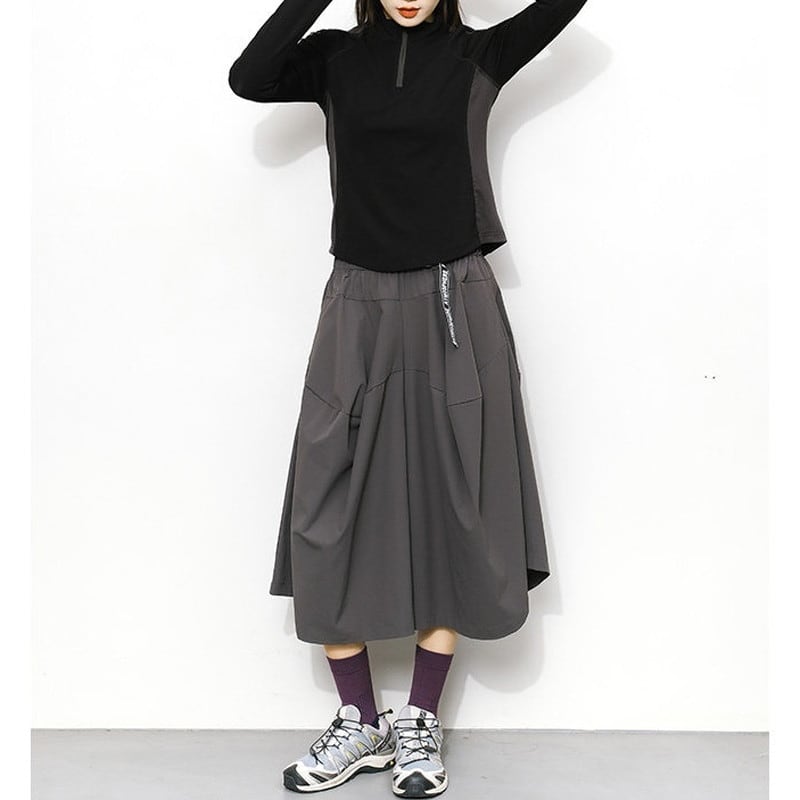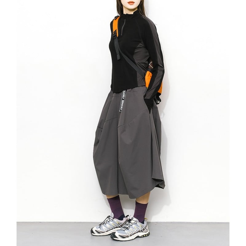 身体に優しくフィットするスリムなシルエットと、高めに設定された襟元が、スポーティかつ都会的な佇まいを演出します。