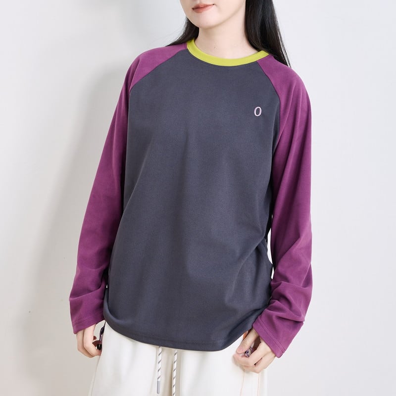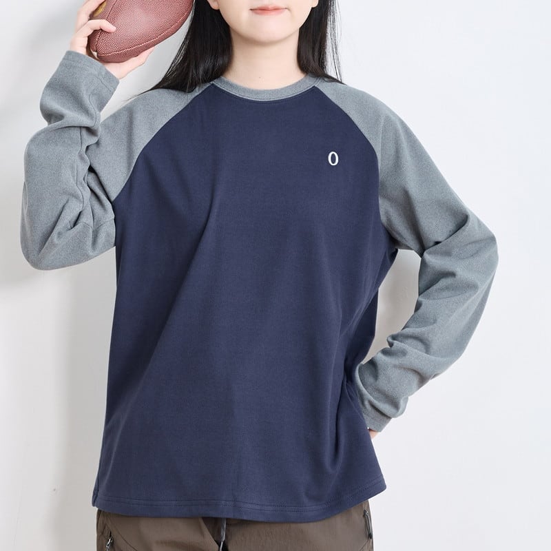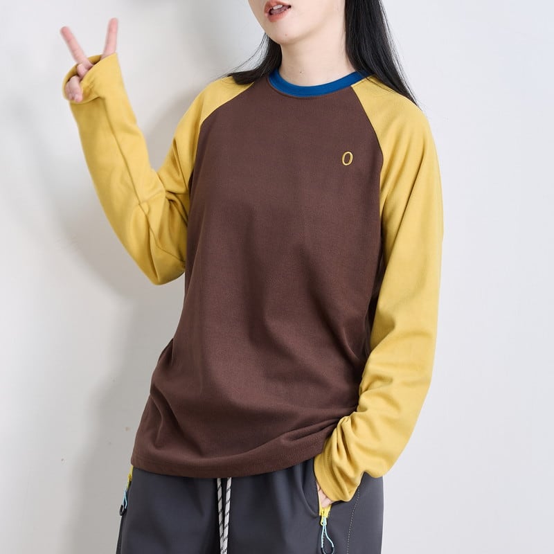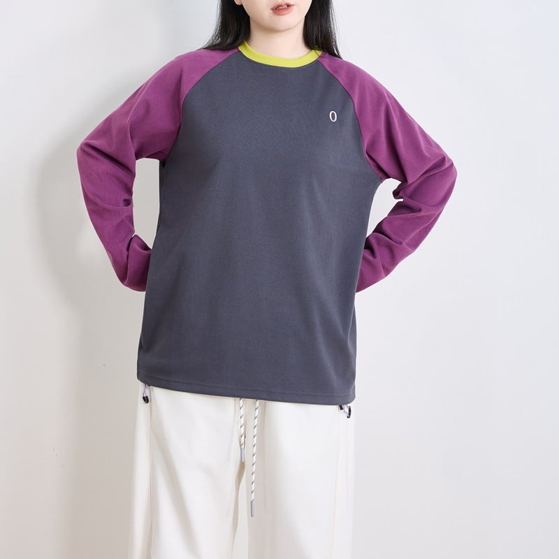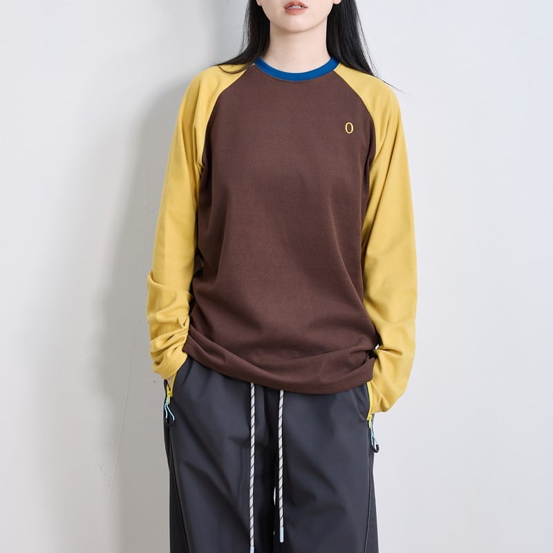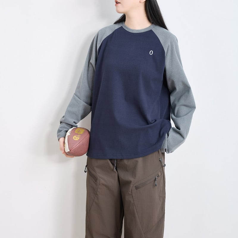 配色ラグランスリーブクルーネックTシャツ C01015