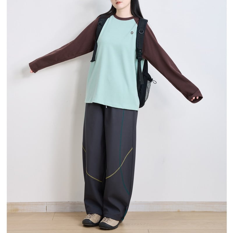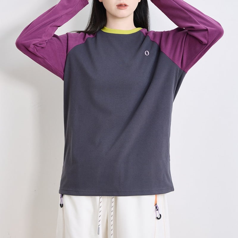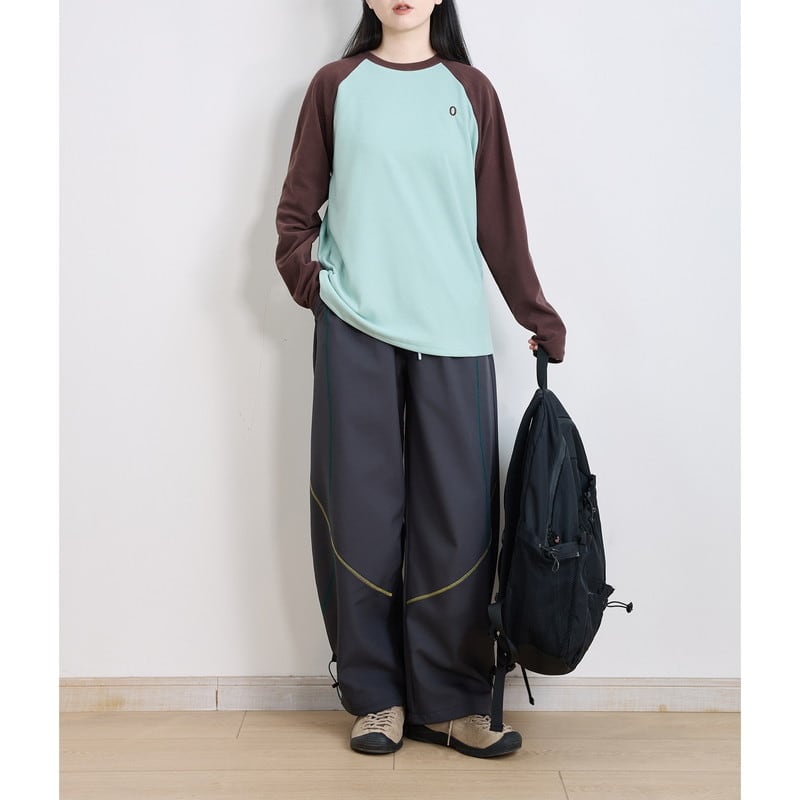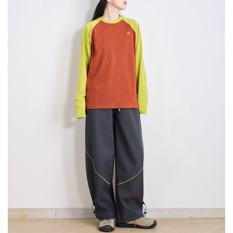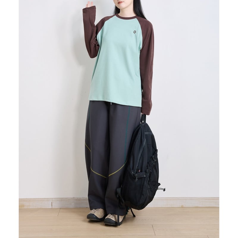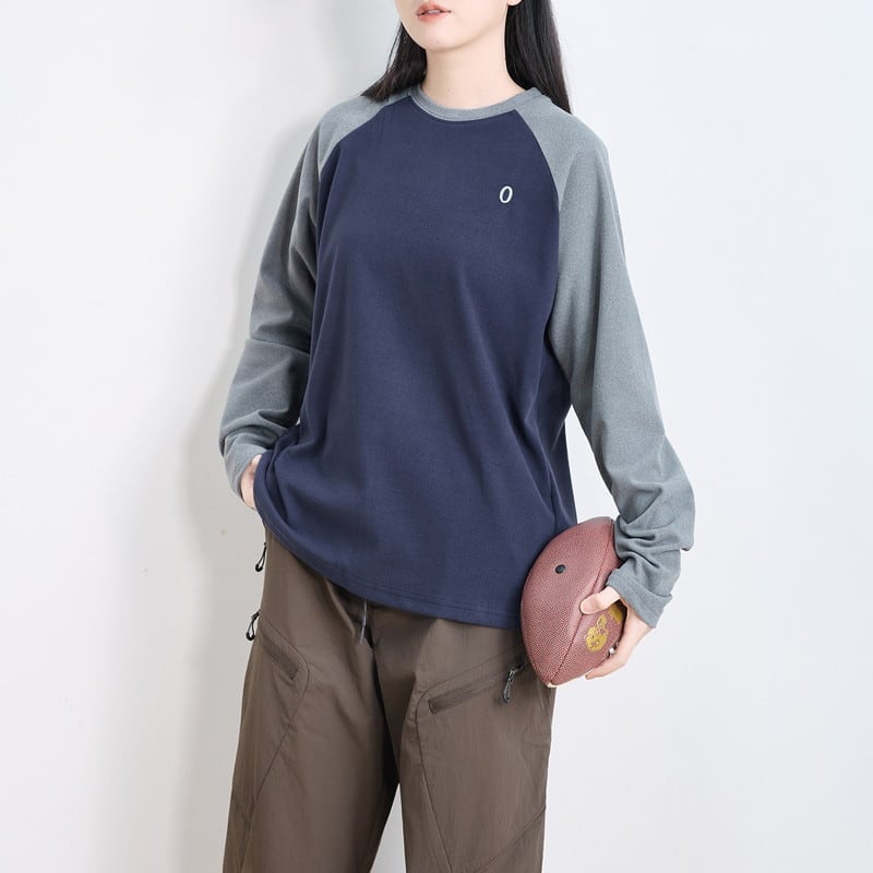 配色ラグランスリーブクルーネックTシャツ C01015