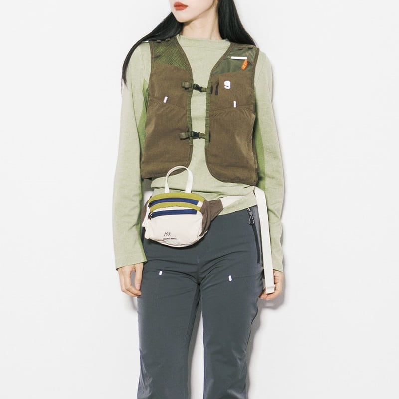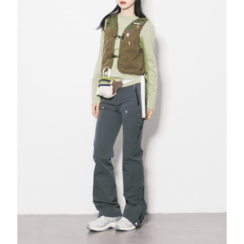大小様々なフロントポケットを配し、高い収納力とデザイン性を兼ね備えた本格的なユーティリティベストです。