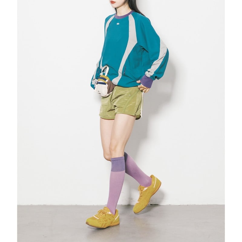 襟元や袖口の配色を切り替えたリブ仕様が全体のシルエットを引き締め、アクティブなシーンでも都会的で洗練された佇まいを演出。