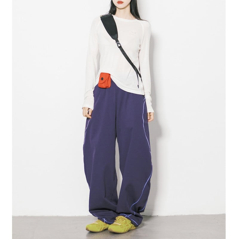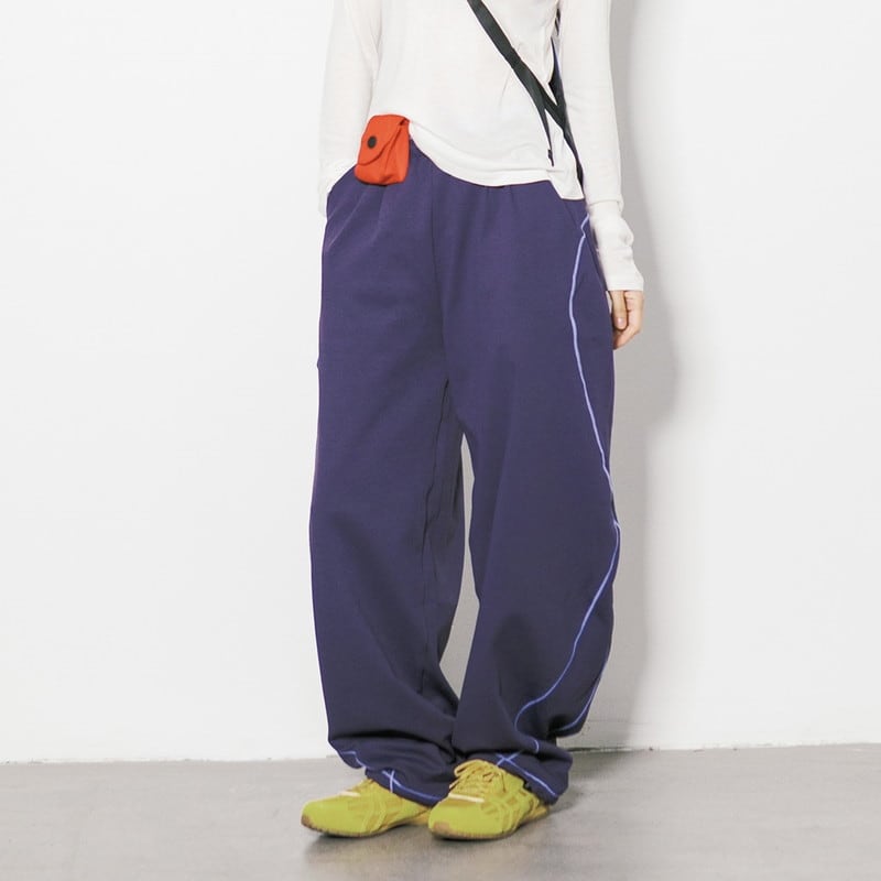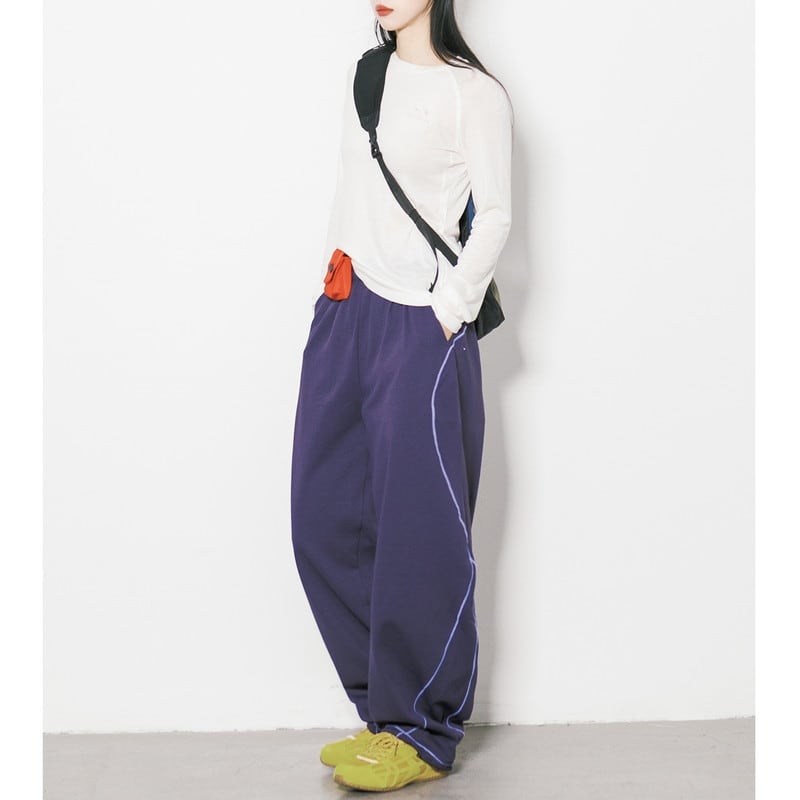 曲線サイドラインワイドスウェットパンツ C01031