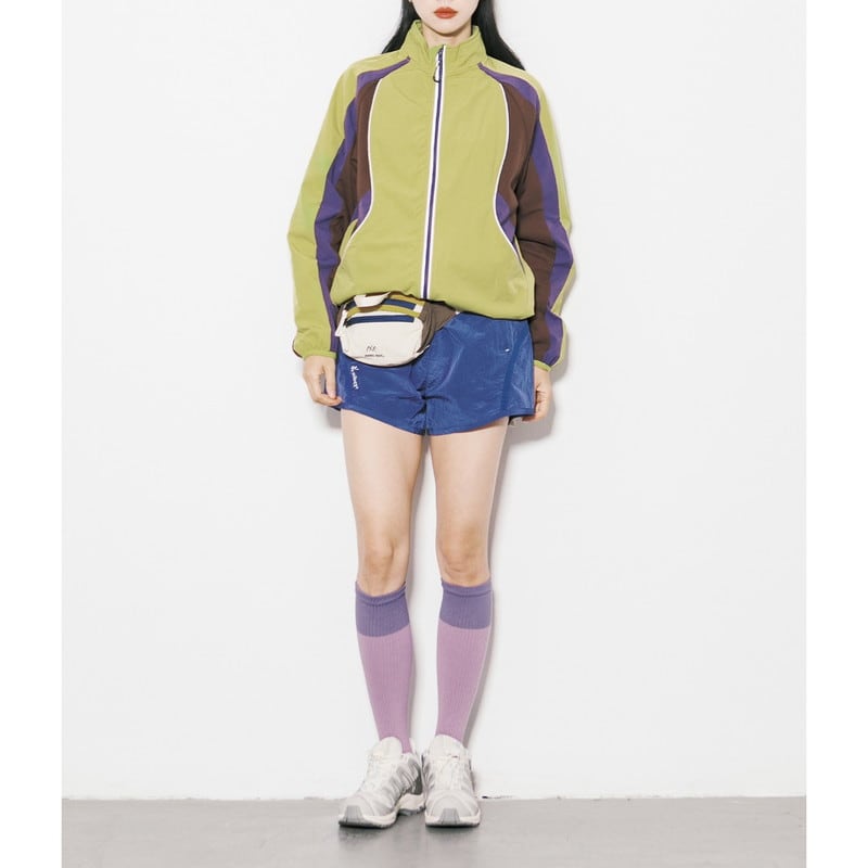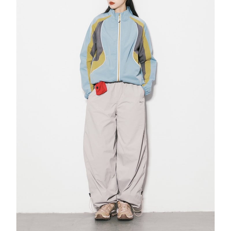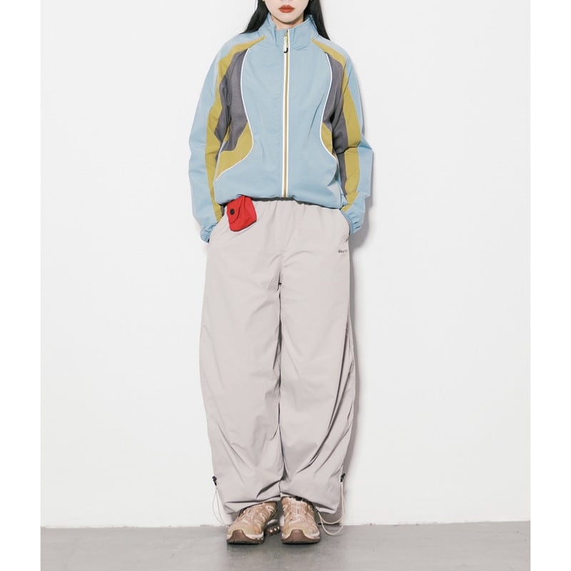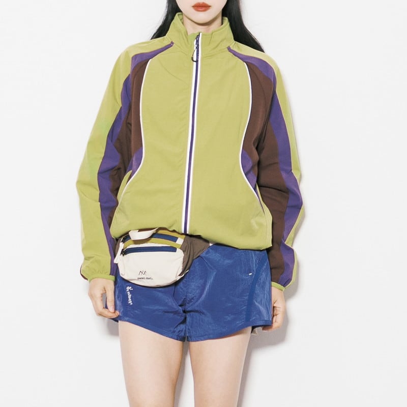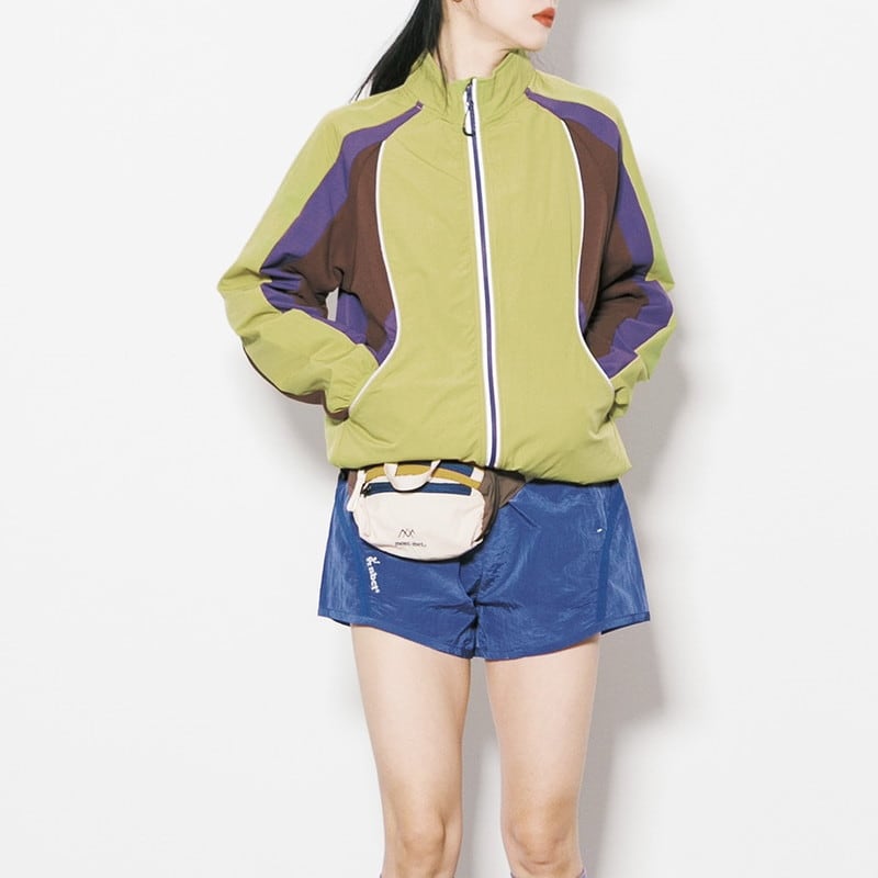 ボディから袖にかけて流れるような曲線的な配色切り替えが、レトロスポーティな躍動感を演出するトラックジャケットです。