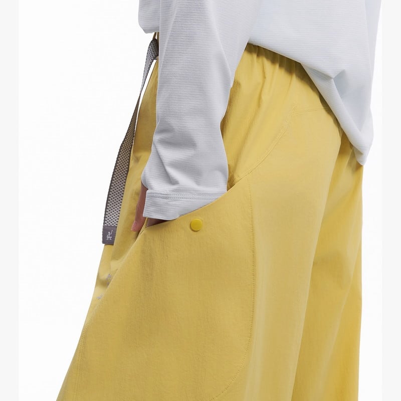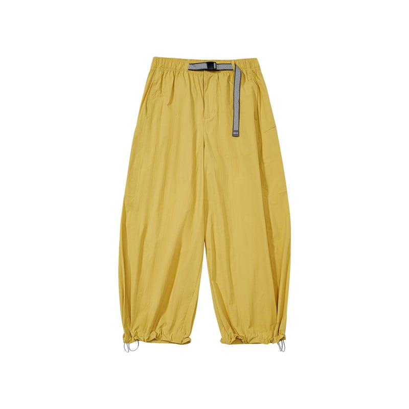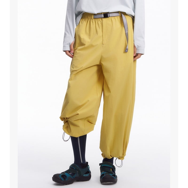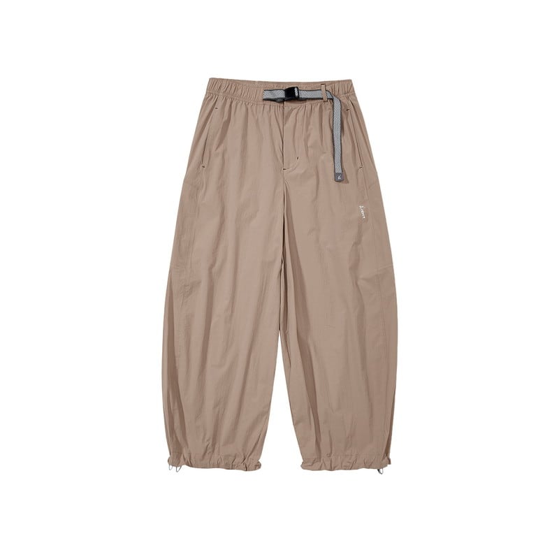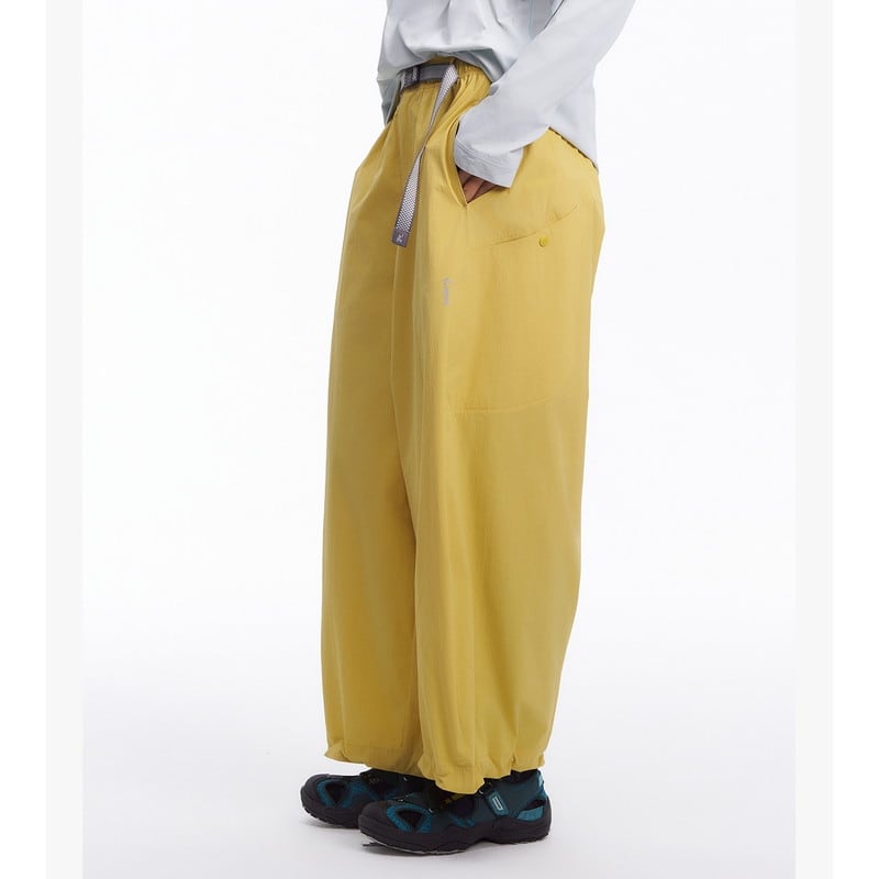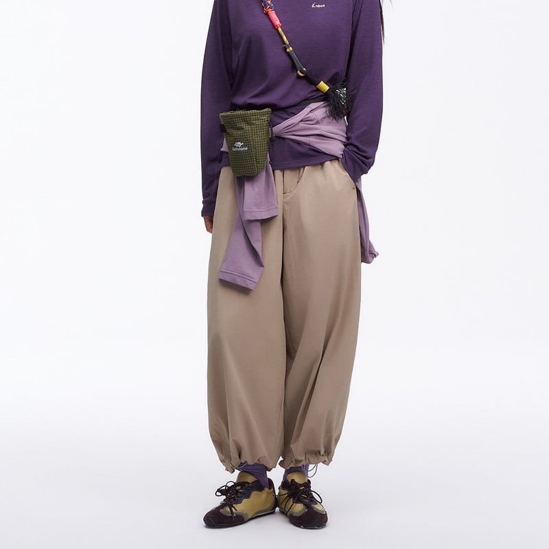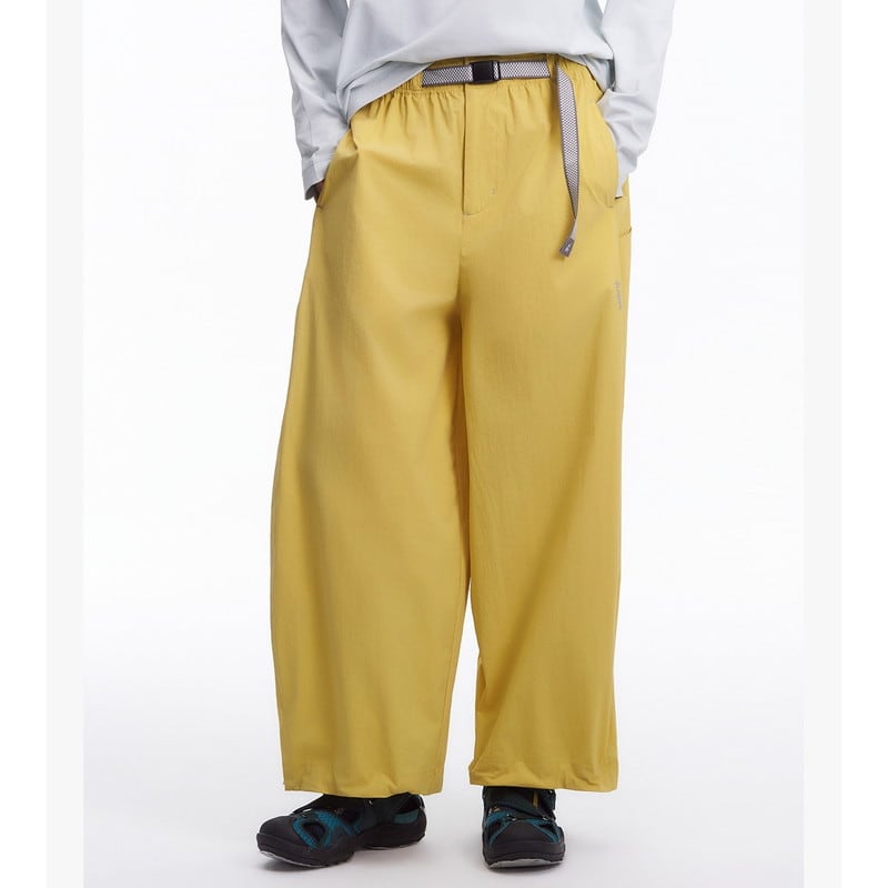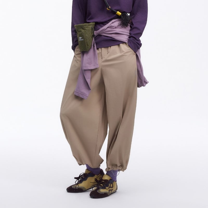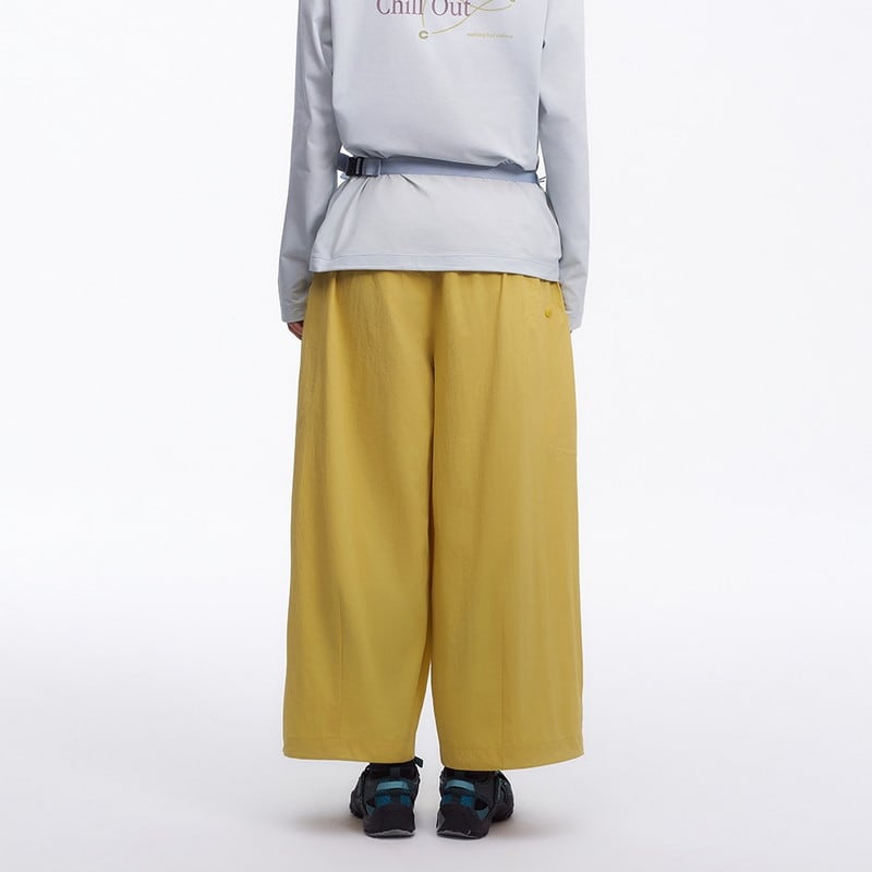 流れるようなワイドシルエットと機能的なディテールが融合し、都会的なアウトドアスタイルを提案するアクティブパンツです。
