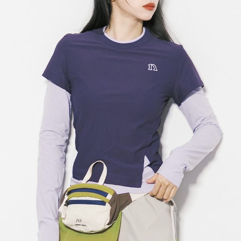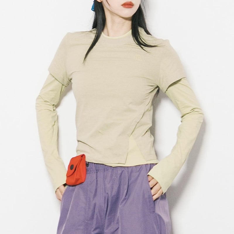フェイクレイヤードスリムフィットトップス C01034