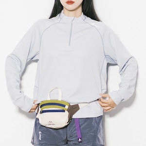 肩から脇にかけての立体的なカッティングが、身体の動きにしなやかに寄り添い、スポーティで洗練された佇まいを描き出します。