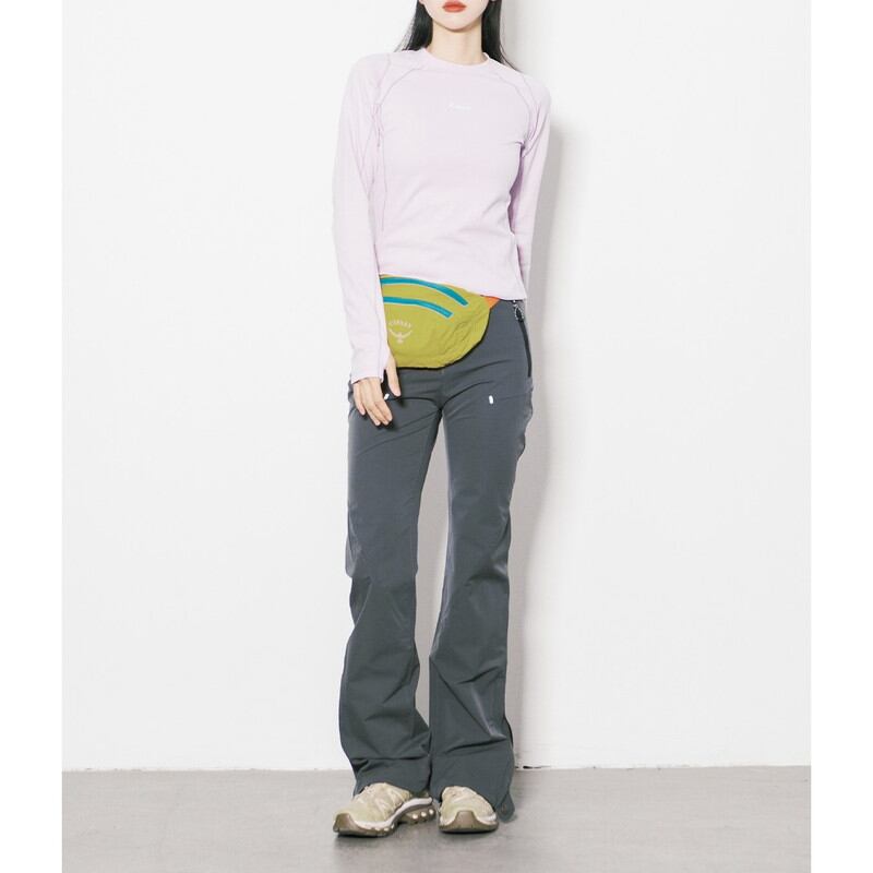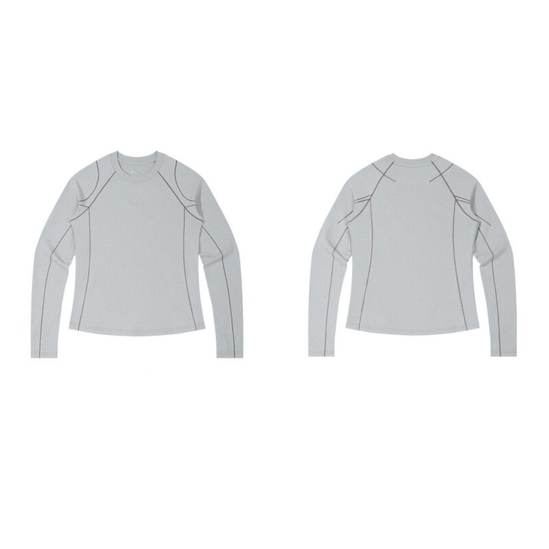首元を優しく包むクルーネックと無駄のないフィット感が、一枚での着用はもちろんインナーとしても高い汎用性を発揮。