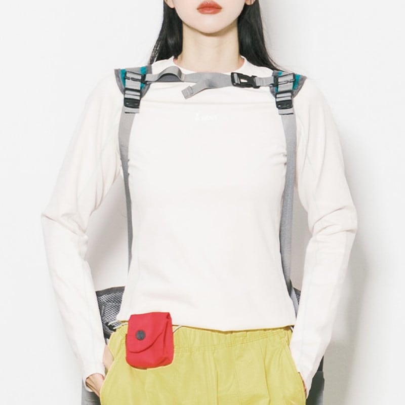 胸元に配された控えめなロゴプリントが、シンプルなデザインの中に洗練されたアクセントを添えるロングスリーブトップスです。