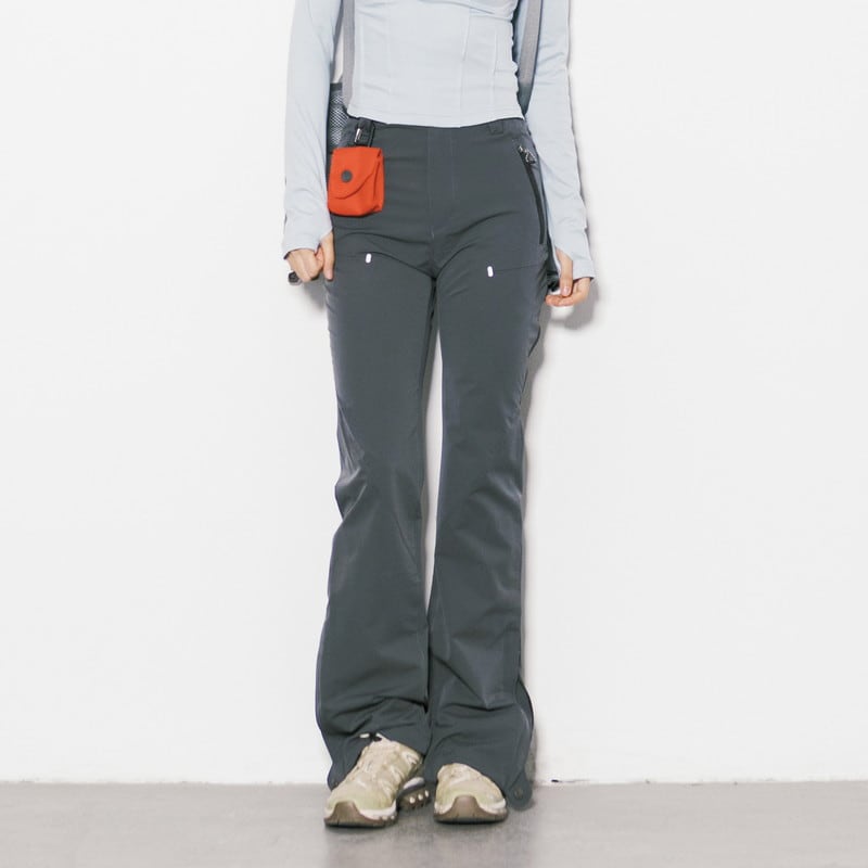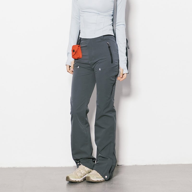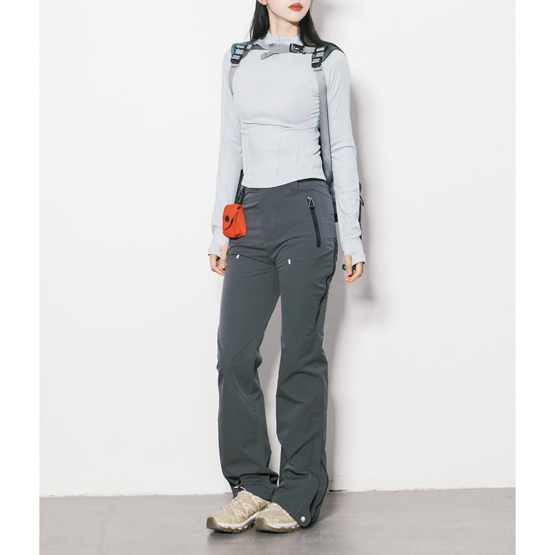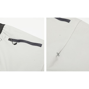 膝周りの立体的なカッティングとサイドのジップポケットが、都会的なギア感とモダンな表情を演出するスリムパンツです。