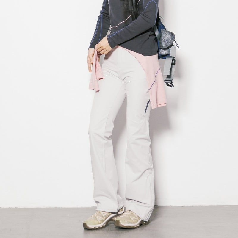 脚のラインに沿いながらも裾まで美しく伸びるストレート寄りのシルエットが、スポーティかつ洗練されたスマートな佇まいを叶えます。