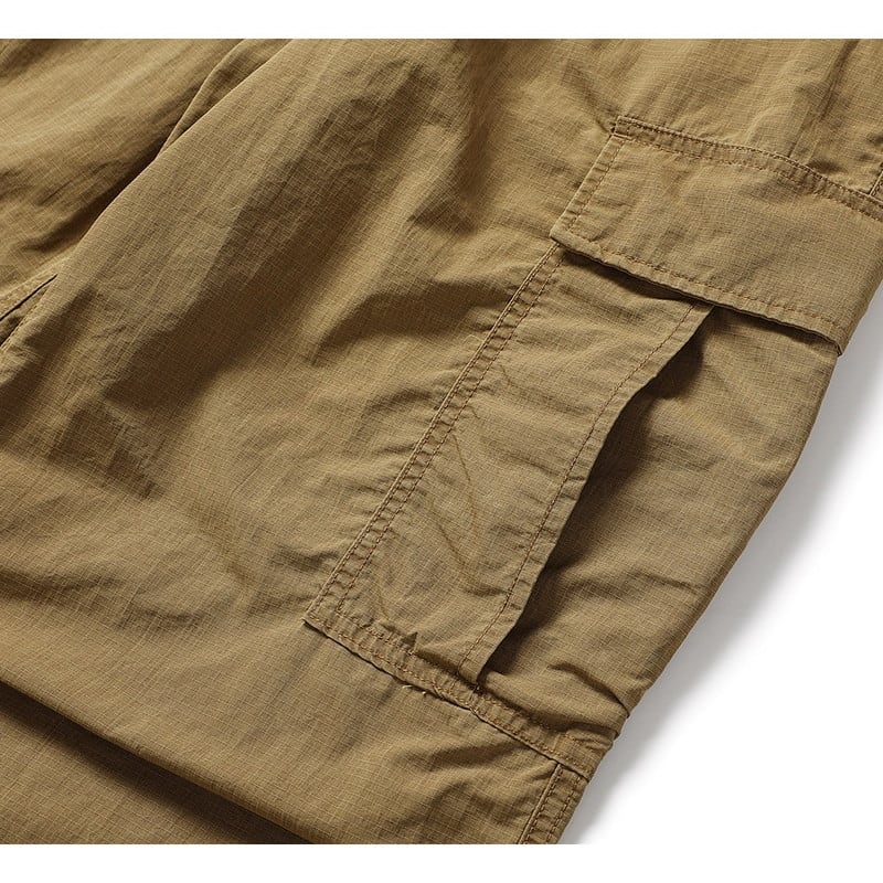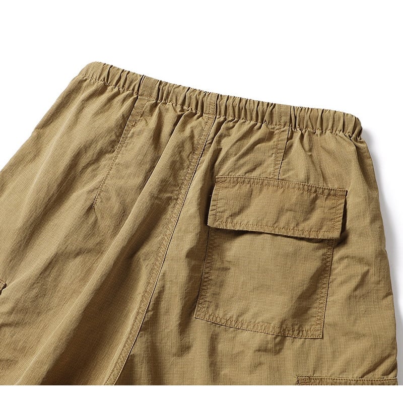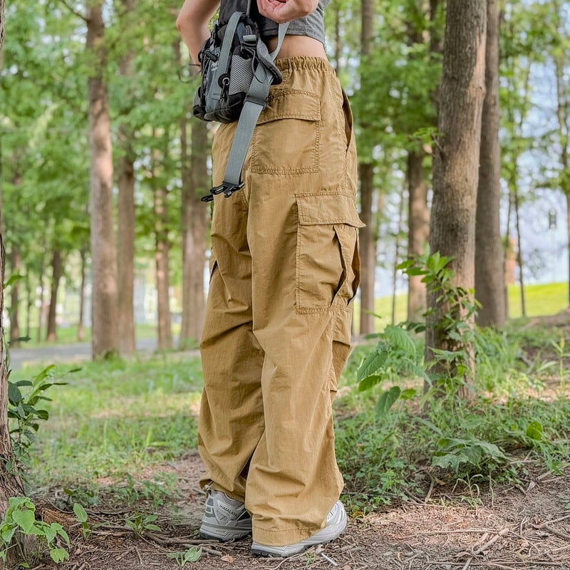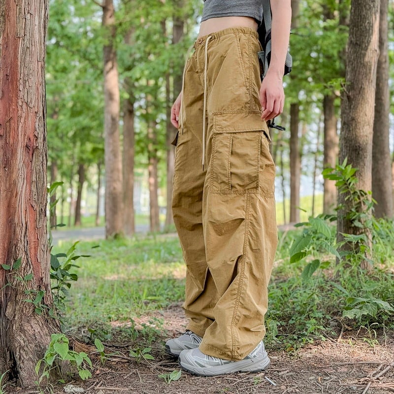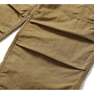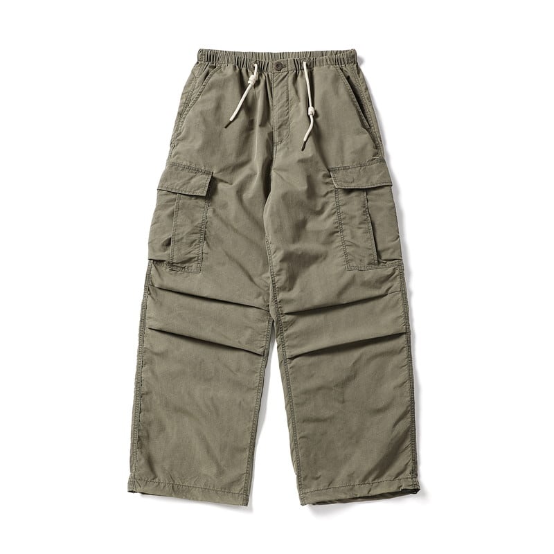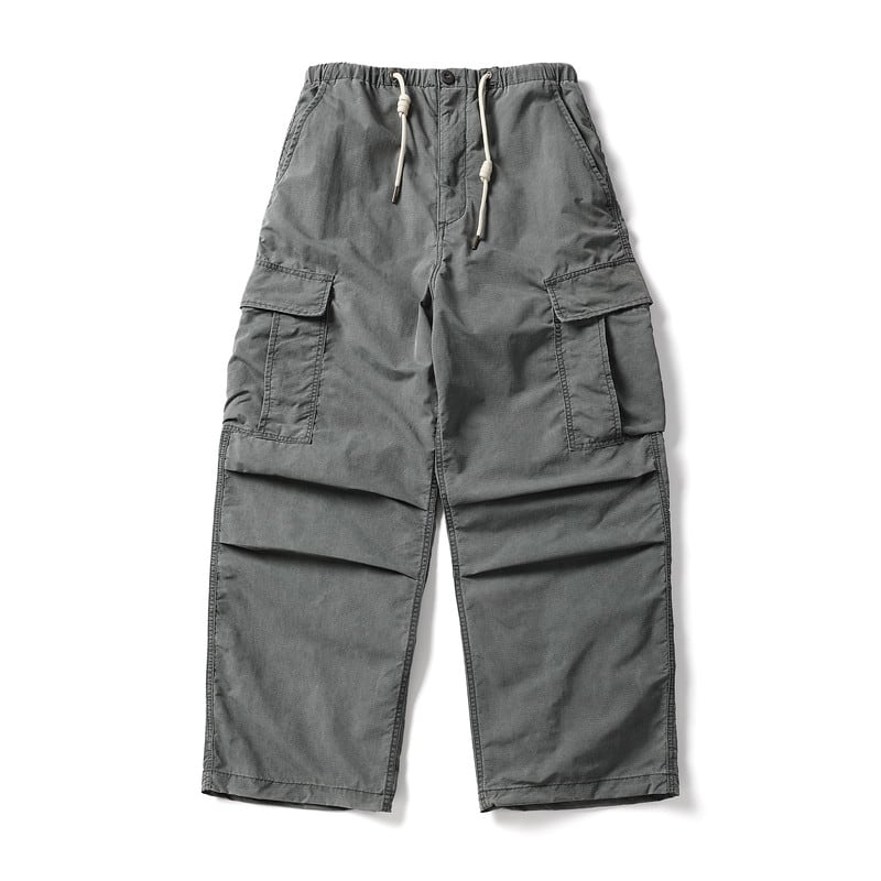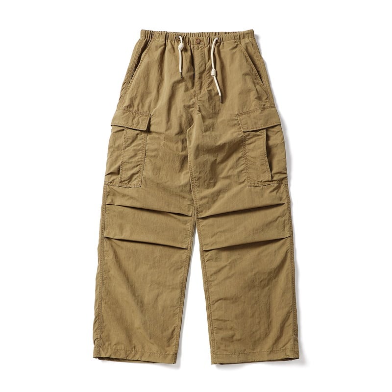 サイドに配された大きなフラップポケットが、武骨ながらも現代的なミリタリー要素を醸し出すワイドパンツです。