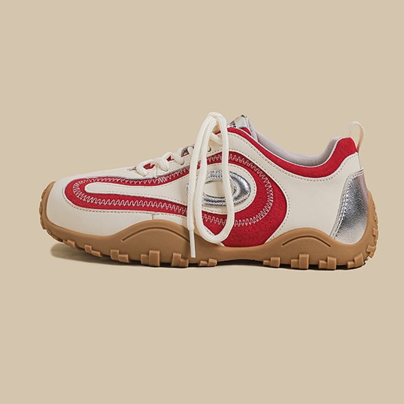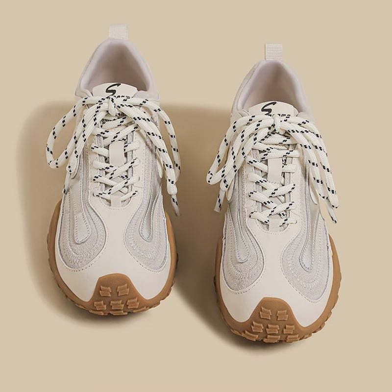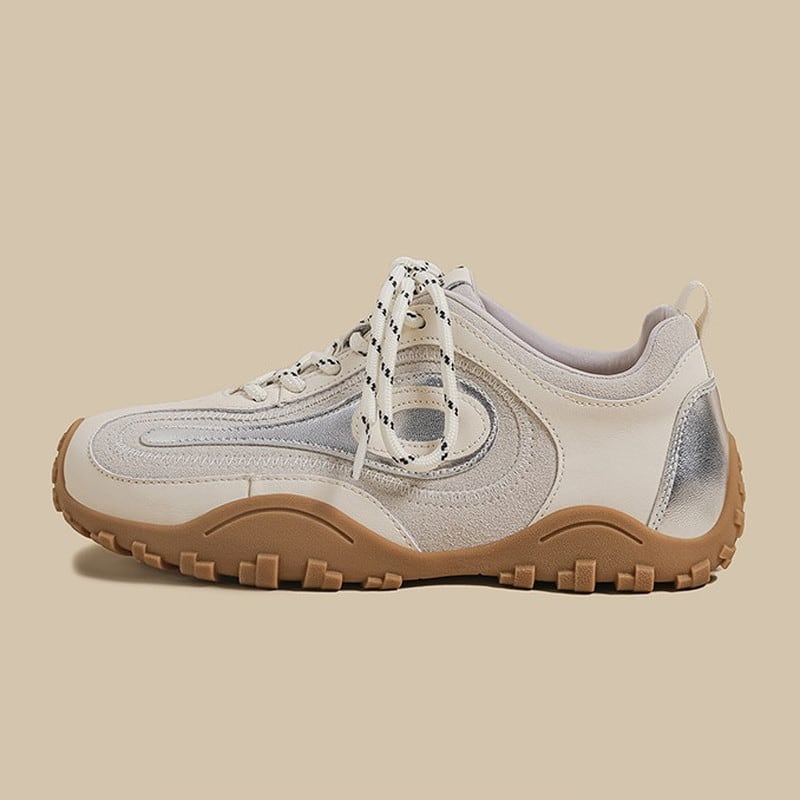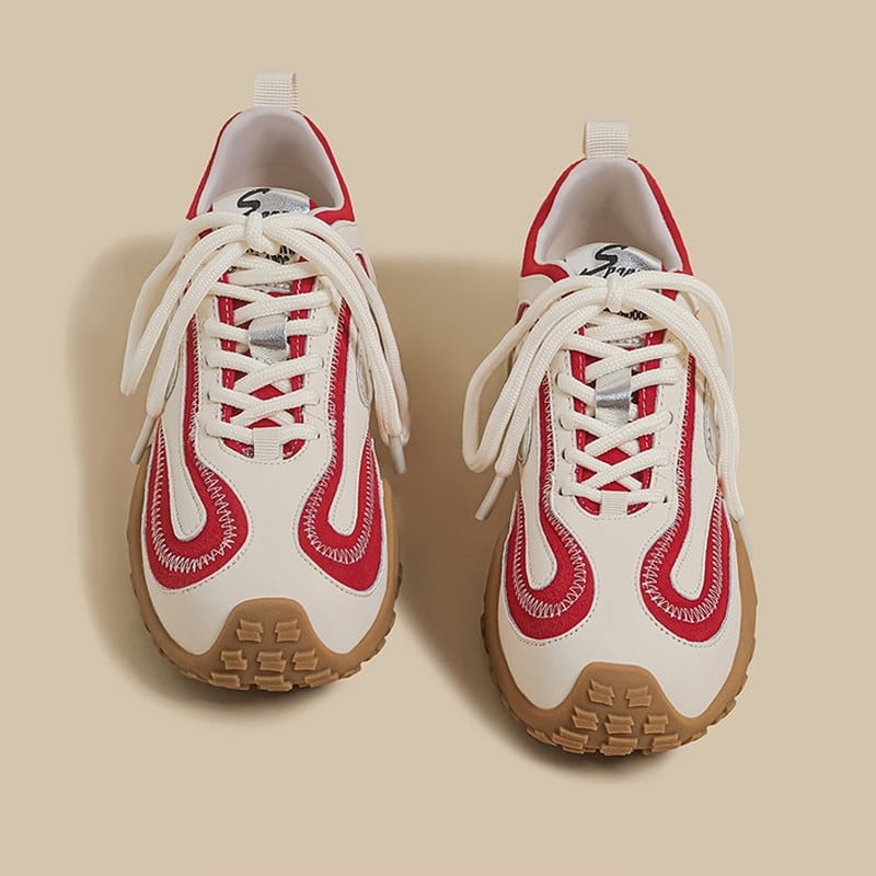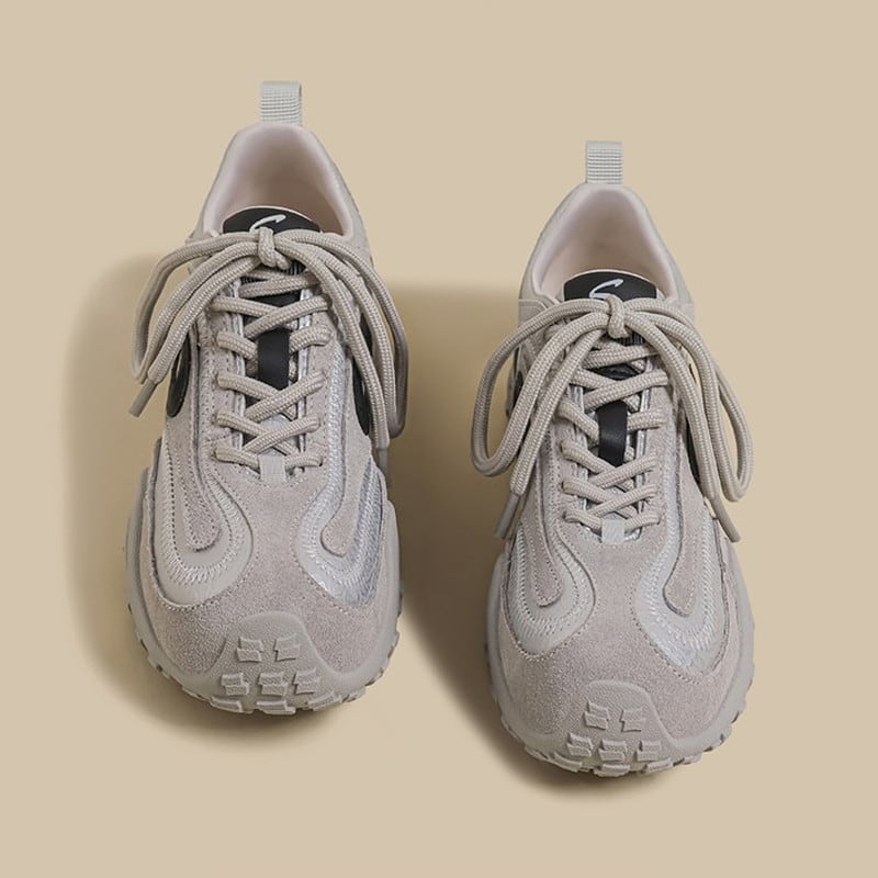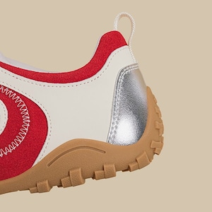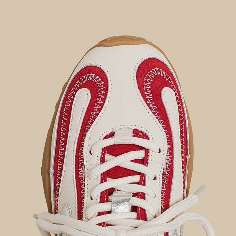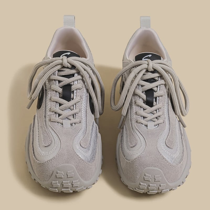 アッパーに配された曲線的なパネルデザインと、それを際立たせるステッチワークが、足元にモダンで躍動的な表情を与えるスニーカーです。