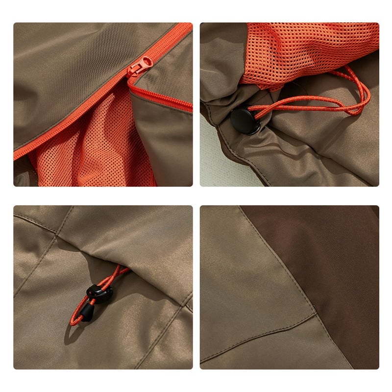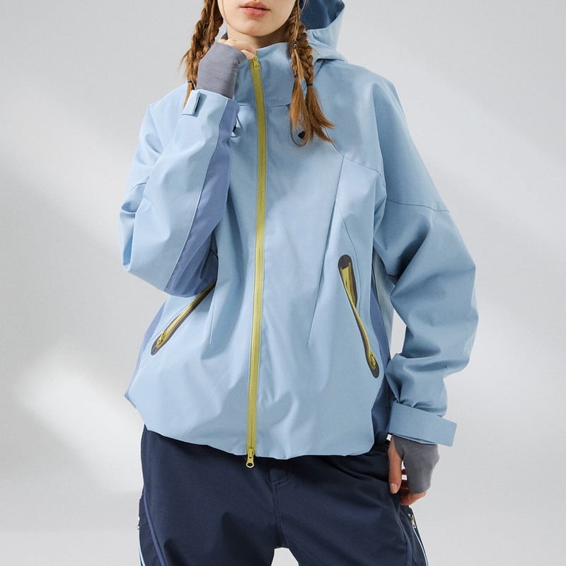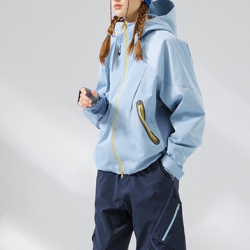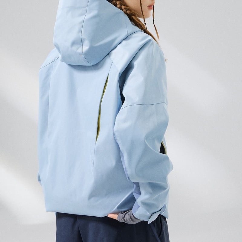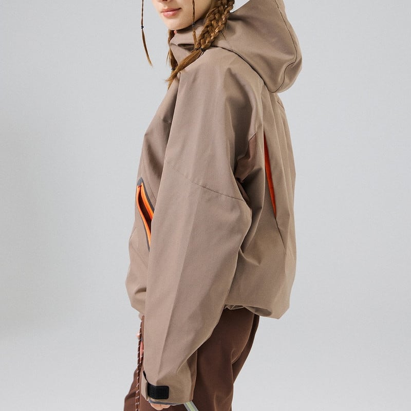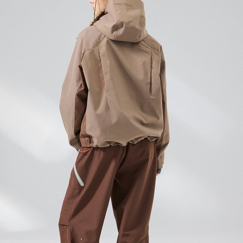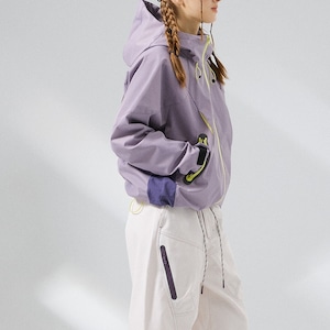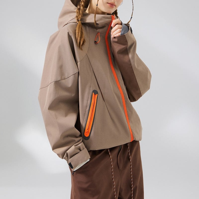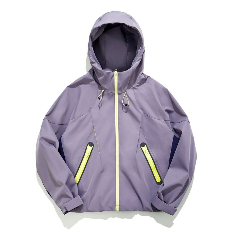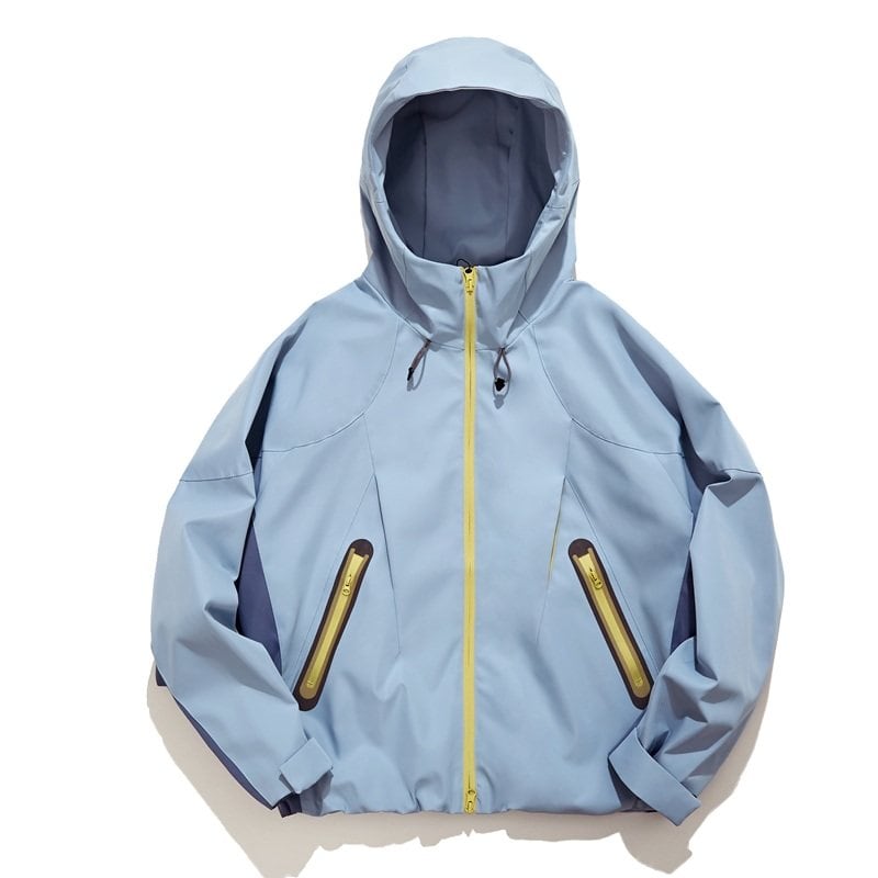 首元を深く覆うハイネックデザインと、コントラストの効いたジップラインが、都会的でシャープな表情を演出するフーデッドジャケットです。