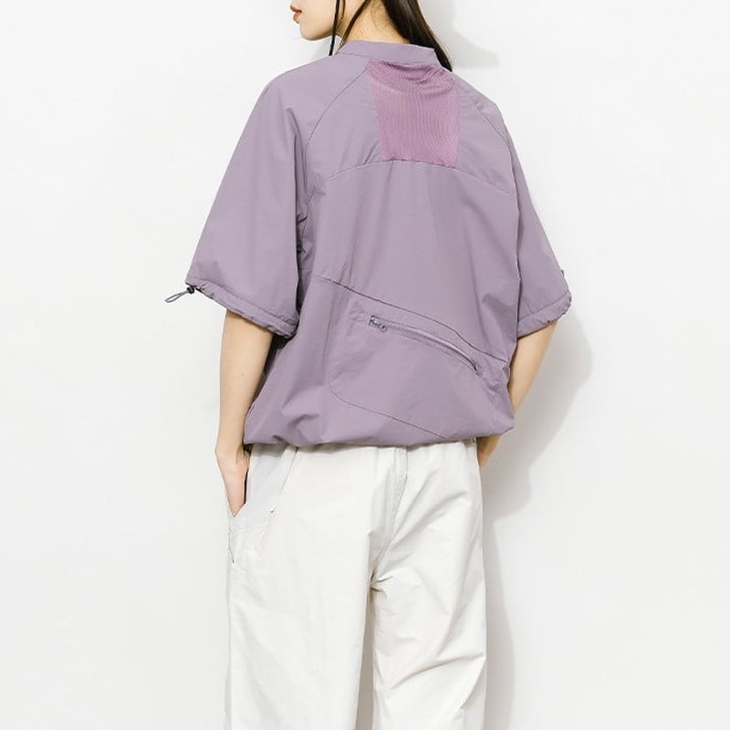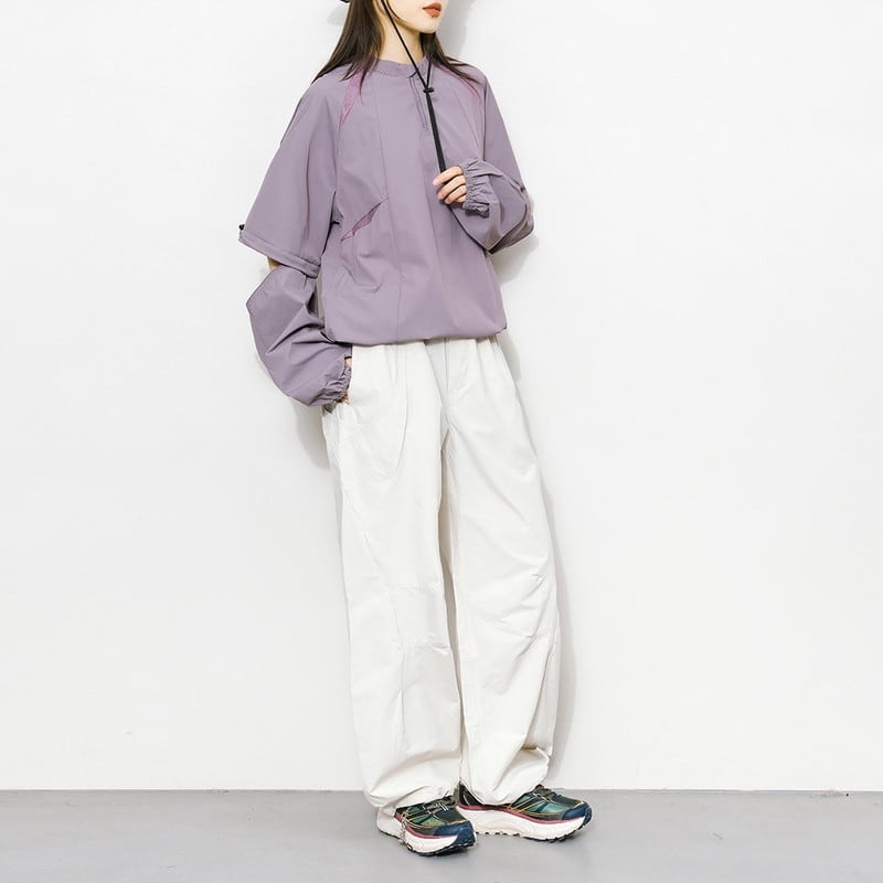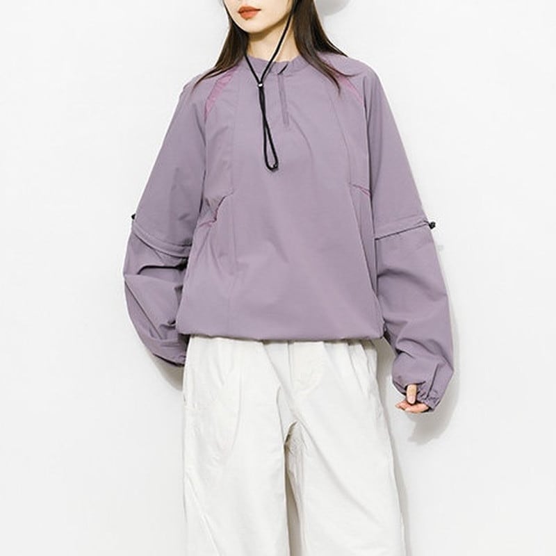 首元をすっきりと見せるバンドカラーとハーフジップのデザインが、都会的で洗練されたスポーティスタイルを演出するプルオーバーです。