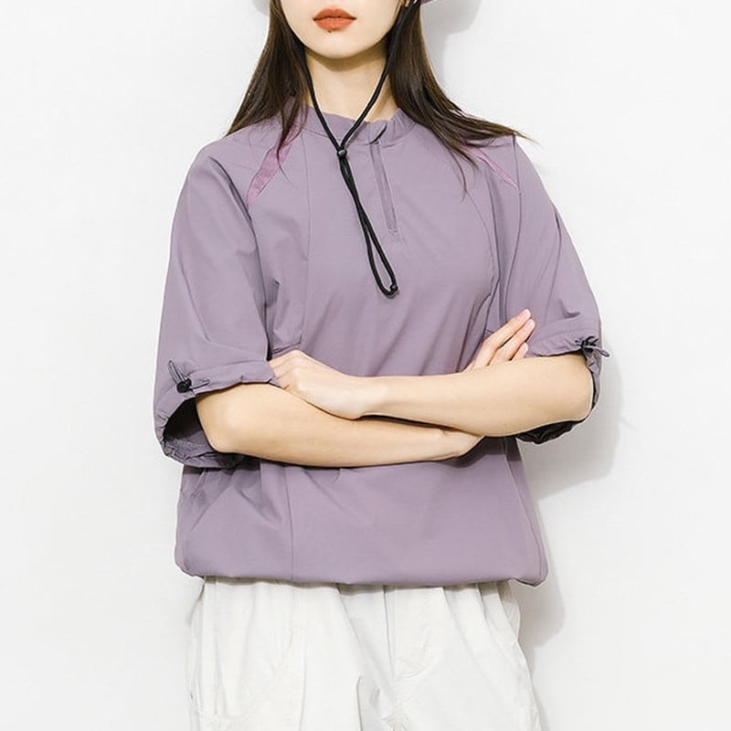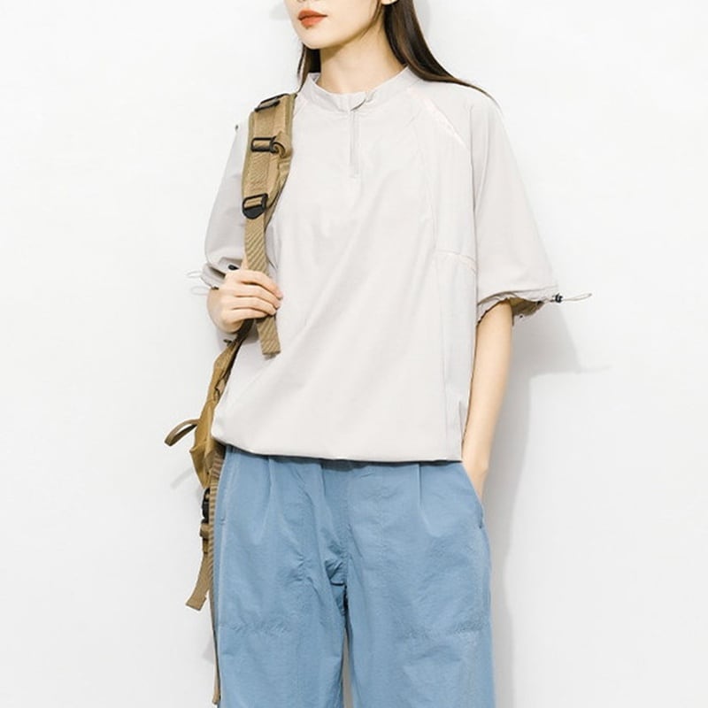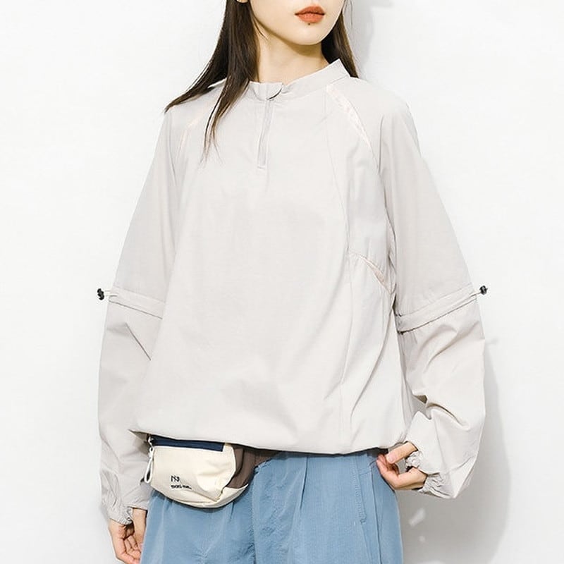ギャザースリーブハーフジッププルオーバー C01058
