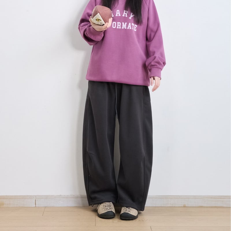 オーバーサイズのカレッジスウェットを合わせてこなれたカジュアルスタイルを楽しんだり、タイトなトップスをインして綺麗めなモードスタイルにまとめるのがおすすめです。
