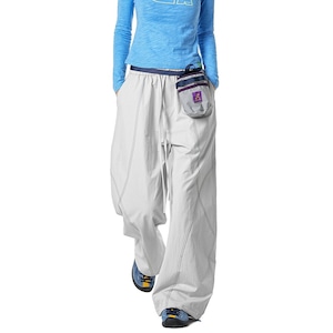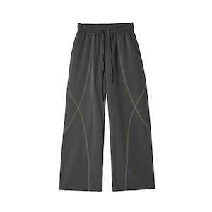 フロントからサイド、背面へと流れるような曲線的なパネル切り替えが、唯一無二のストラクチャルな造形美を放つワイドパンツです。