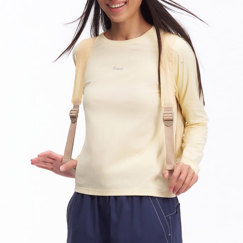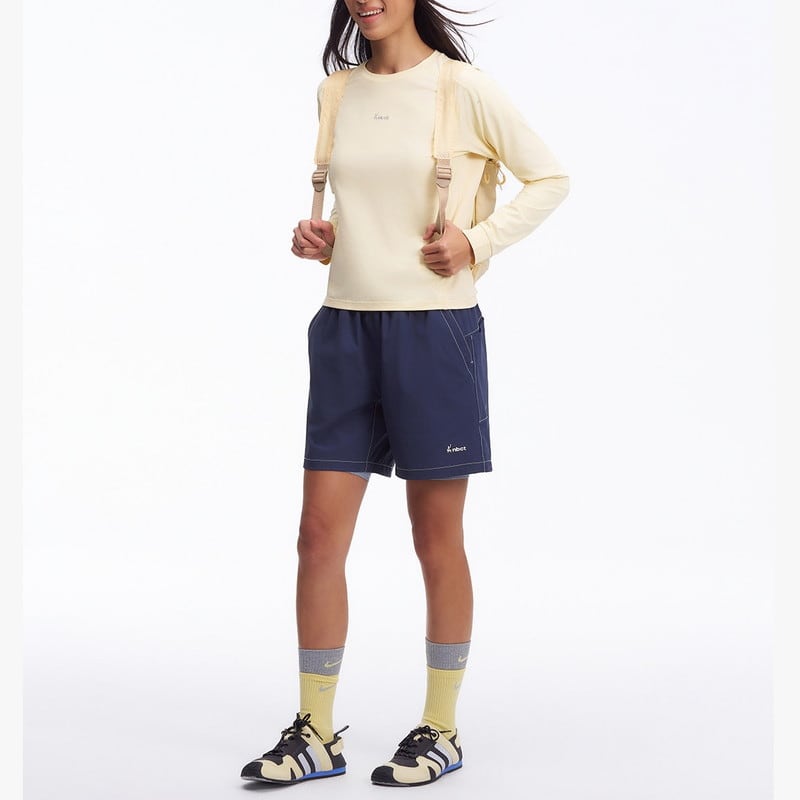 同系色のボトムスと合わせたミニマルなセットアップスタイルから、ベストを羽織ったレイヤードまで、大人のアクティブシーンをクリーンに彩ります。