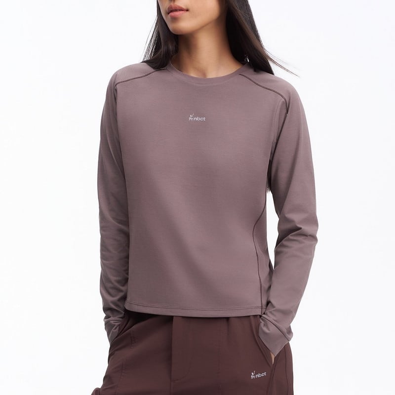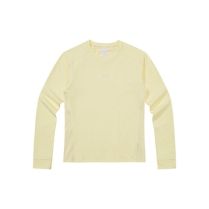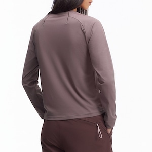 首元を優しく包むクルーネックと無駄のないフィット感が、一枚での着用はもちろんインナーとしても高い汎用性を発揮。