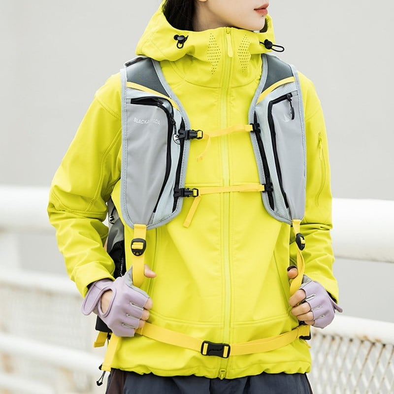 身体のラインに沿ったシャープなカッティングと、フロントに配された機能的なジップポケットが、モダンなギア感を際立たせます。
