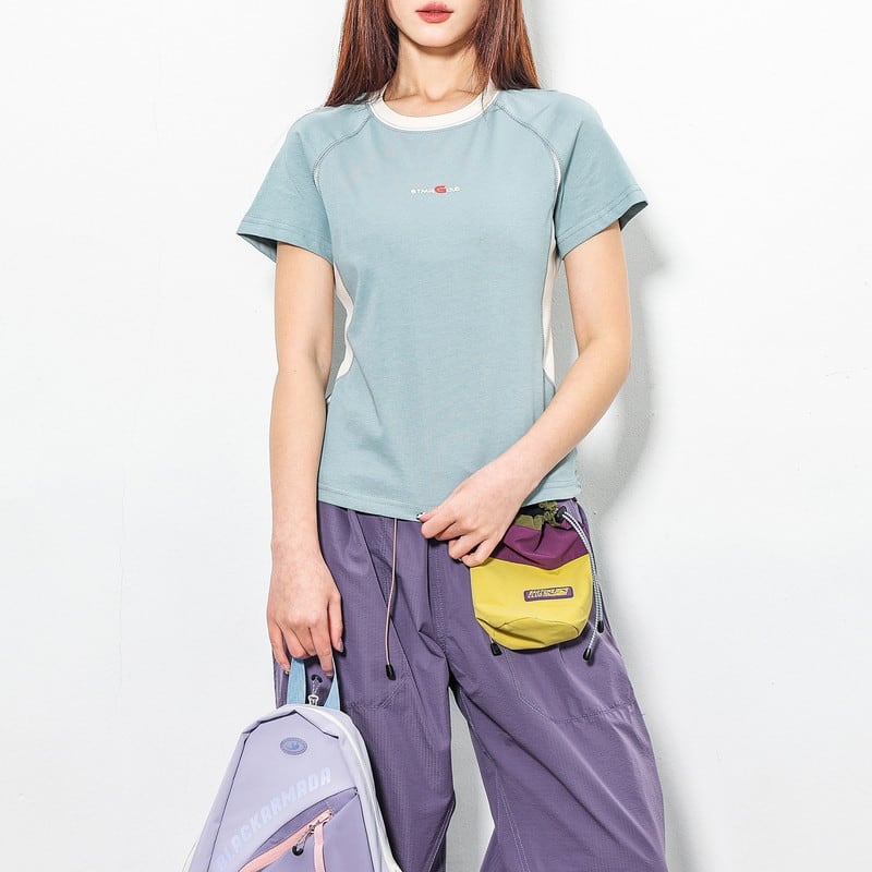 バイカラーパイピングスリムTシャツ C01080
