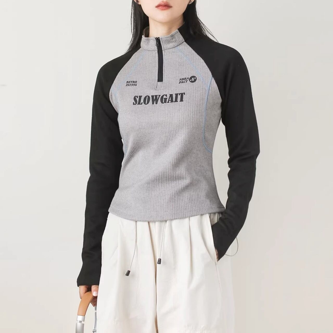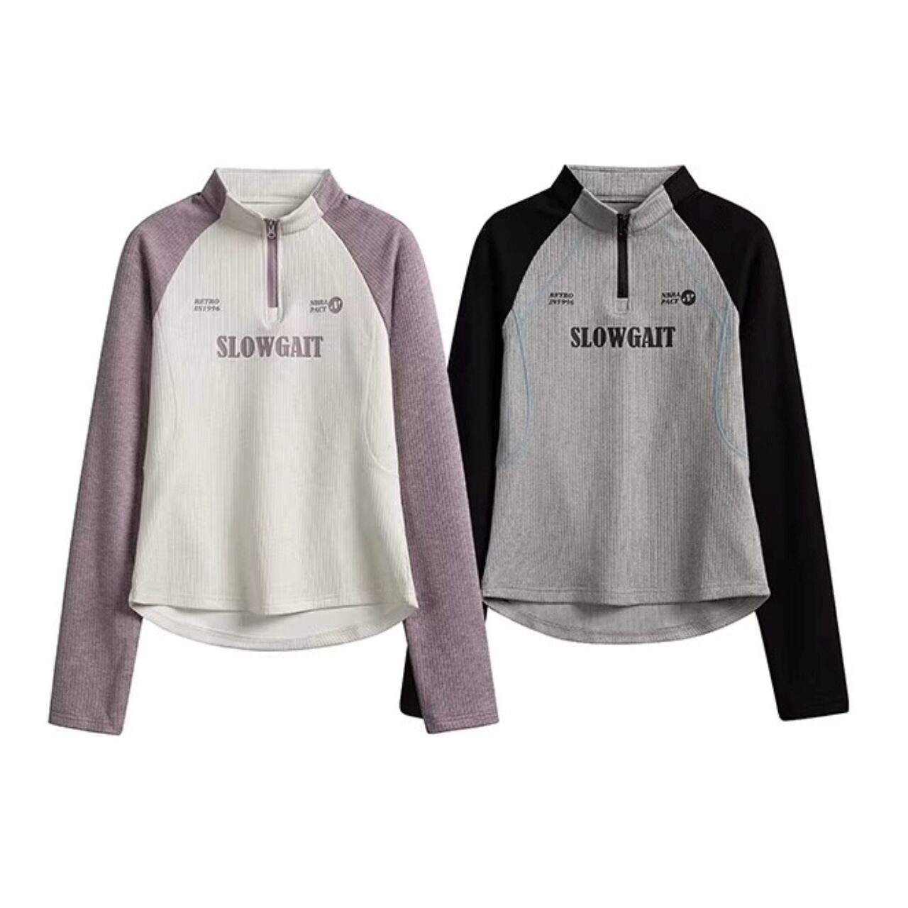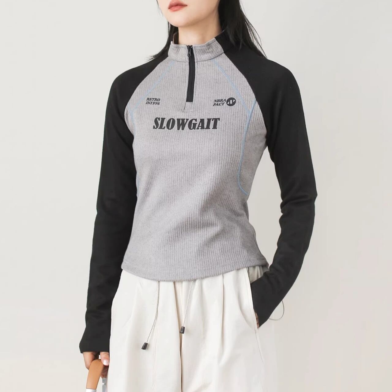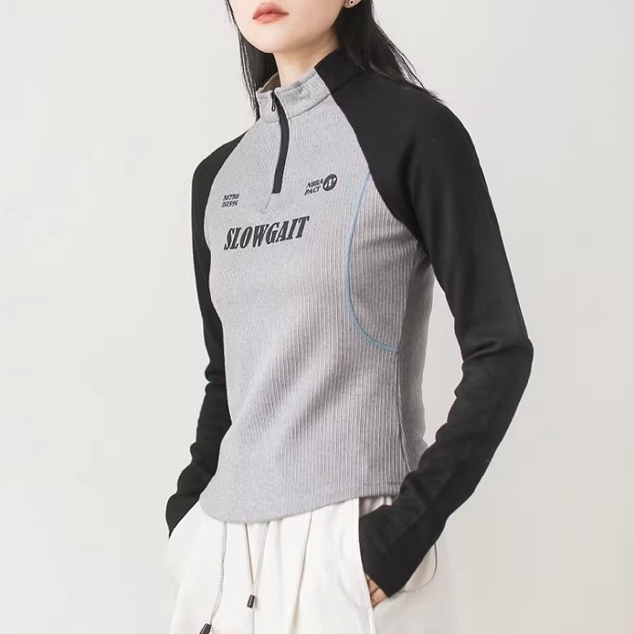 ハーフジップラグランリブトップス C01108