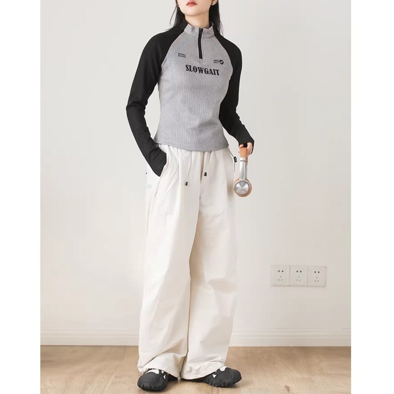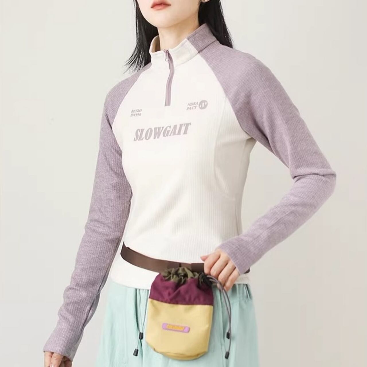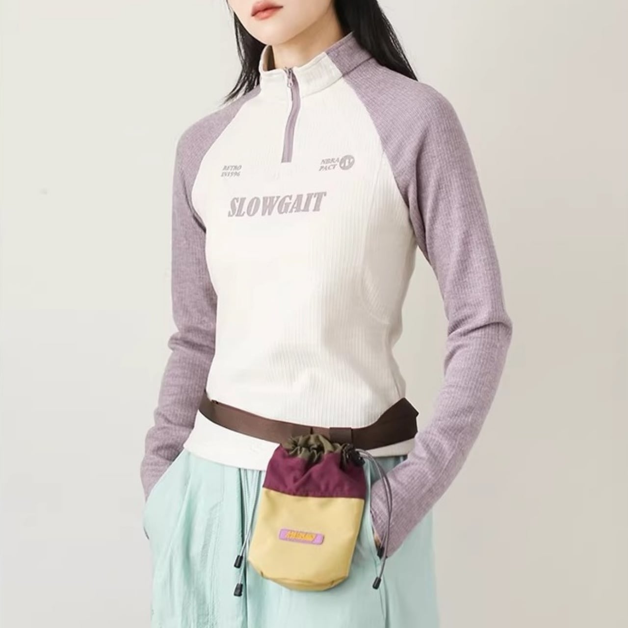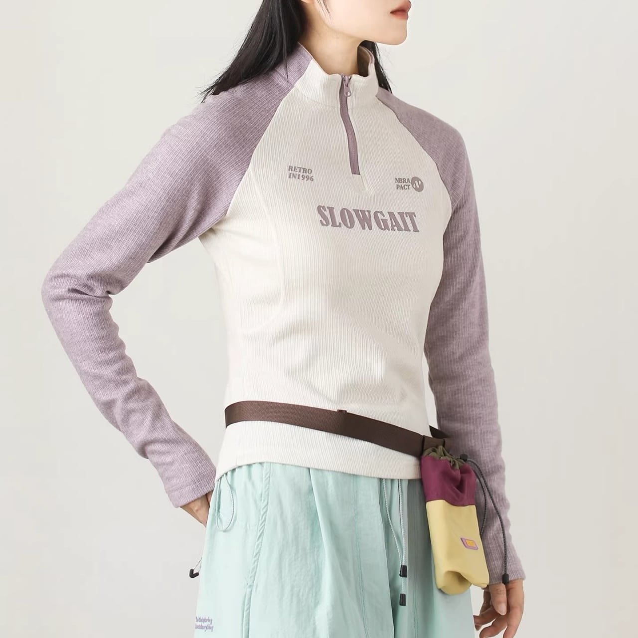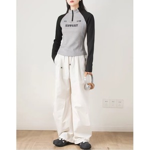 ハーフジップラグランリブトップス C01108